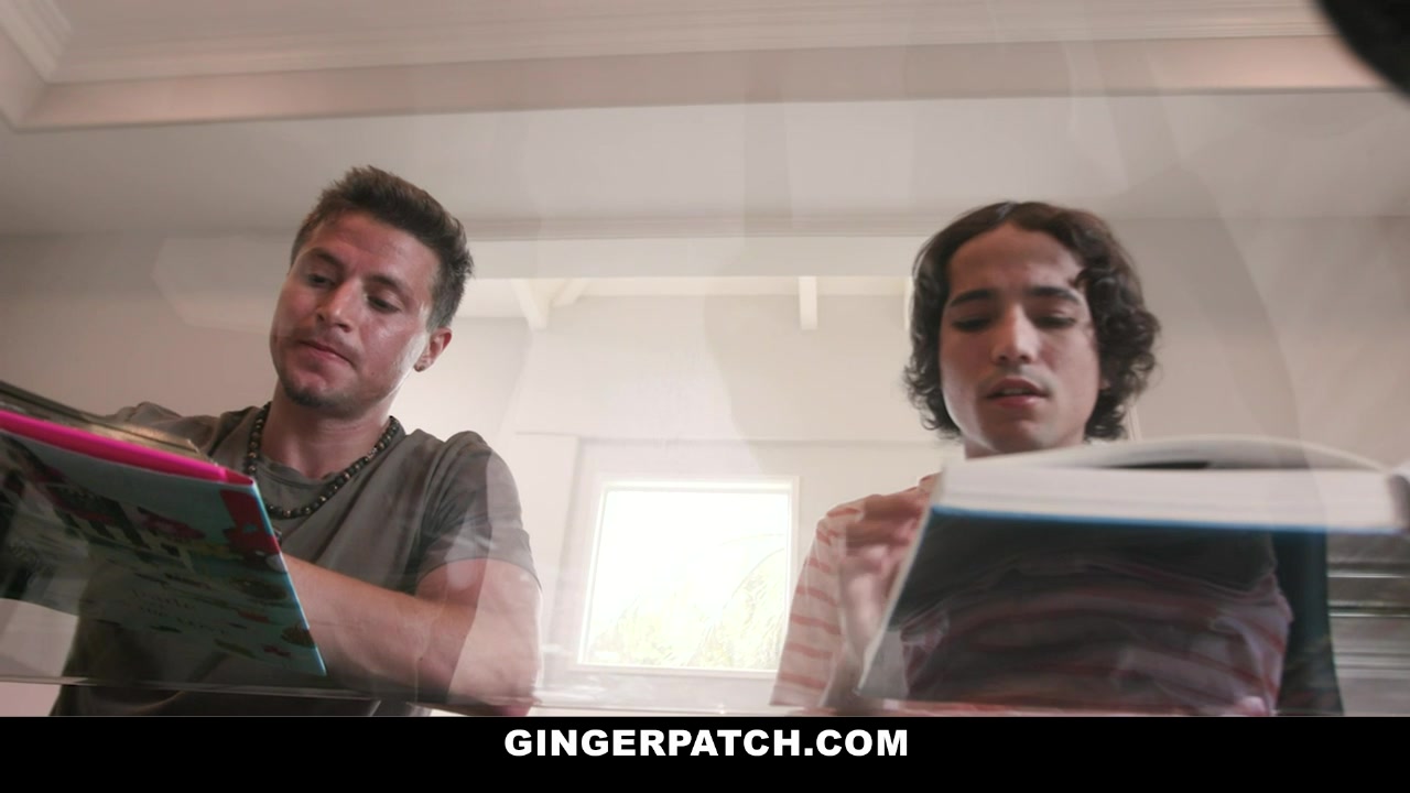 Much to our stud’s surprise, Alexa climbs under the table and sucks his cock just like his friend said she would! Soon, they move the action to the bed and spitroast the horny ginger babe until she can barely move. Then, they cover her in cum. Too bad they get caught by her dad before it’s all said and done!