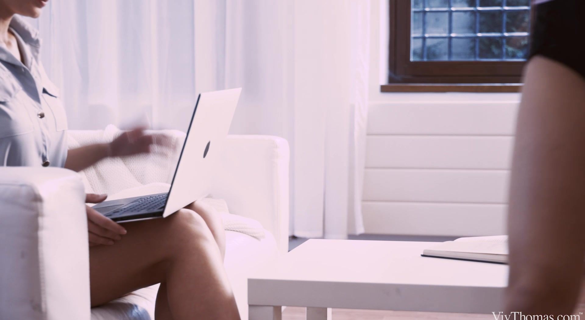 Cute brunette Lady Dee is reading when her gorgeous girlfriend Lee Anne arrives home, as Bree Parker’s hot lesbian movie “Work Can Wait” begins. Lee Anne’s had a bad day and still has plenty to do, but her sweetheart cheers her up with a shoulder massage – then distracts her by caressing her gorgeous breasts. Lee Anne unbuttons her dress so Dee can tweak her stiff nipples as they kiss, then suck them avidly. The lovers undress each other, and Dee goes down to lick and stroke Lee Anne’s hot pussy, lapping at her clit to make her gasp with pleasure. Now Lee Anne teases Dee’s tiny dark nipples and eats her shaved pussy, strums her clit and fingerbangs her voraciously, then turns her around to lick her tight asshole as she frigs her to an orgasm. Lee Anne rides Dee’s fingers to a powerful climax of her own, their sexy bodies entwined.