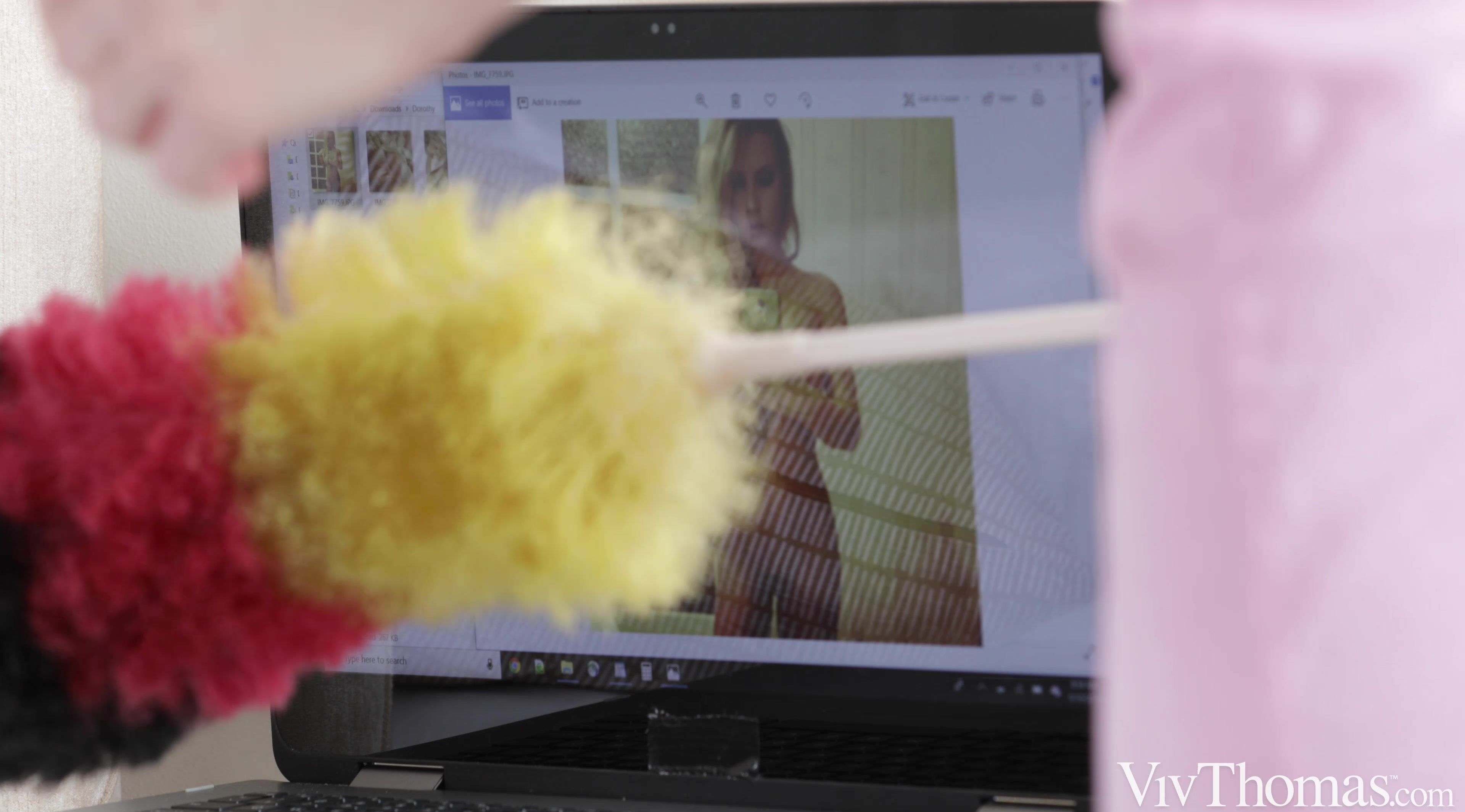 Busty beauty Dorothy Black is irresistible in a skintight dress and high heels. As Sandra Shine’s erotic lesbian movie “Maid To Cum” begins, the stunning cougar leaves her apartment, greeting cute blonde housemaid Nikki Hill at the door. Soon Nikki is immersed in her chores, but when she finds a sex toy in the bedroom, then accidentally switches on Dorothy’s laptop to see a collection of nude selfies, she can’t help getting aroused. She is masturbating on the bed, uniform unbuttoned and fingers moving between her stockinged thighs, when Dorothy returns home and catches her. The dominant older woman guides Nikki’s hands to her gorgeous breasts, encouraging her to stroke and squeeze them. She kisses the adorable maid, undressing her and pushing her onto her back, lavishing attention on her nipples, then baring her own huge boobs for Nikki to suck voraciously. Dorothy tugs Nikki’s white panties aside and begins to lick her shaved pussy, then reaches for the strapless dildo, pressing the fat end into her own pussy inside her pantyhose as she prepares to fuck her new friend. Nikki gasps as Dorothy penetrates her with the mock cock, drilling her steadily to drive her wild. As her excitement builds, Dorothy lies back so Nikki can straddle her and ride hard. After an intense orgasm, Nikki rips Dorothy’s pantyhose open and laps at her pierced clit, eating the sexy MILF to a powerful climax.