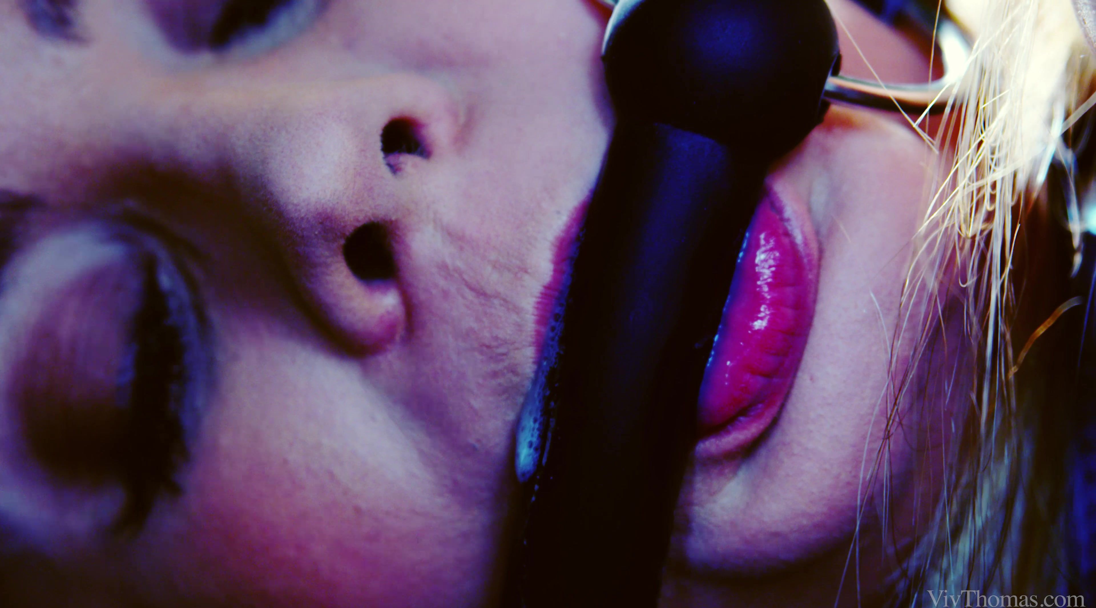 Submissive Dorothy Black is little more than Lexi Lowe’s plaything as episode two of “Be My Slave: Reloaded” begins. It opens with a slo-mo prelude – Dorothy bent over a desk, her hands tied behind her back, her teeth clamped around a rubber bit. She is being anally penetrated by Mistress Lexi, who pulls down her slave’s panties and spits on her asshole, using her saliva to lube her butt plug up Dorothy’s ass. Next we join Lexi and Dorothy on the bed, each of them dressed in black silk underwear; the roles are reversed as Lexi’s hands are bound at the wrist with leather cuffs. The voluptuous beauties kiss with full passion, Lexi sucking on Dorothy’s breasts, and kneeling to eat her pierced pussy. She works hard to pleasure Dorothy, fingering her skilfully and making her orgasm so hard her legs threaten to give way. Dorothy turns and pushes Lexi’s face into her snatch, grinding hard on Lexi’s willing mouth. Slave Lexi eases her finger inside Dorothy’s asshole. Dorothy frees Lexi from her bonds only to turn her around and restrain her hands behind her back. Unable to touch Dorothy, Lexi stands as Dorothy sucks greedily on her big tits, rubbing her clit hard. The postlude mirrors the prelude, this time Dorothy spanking her slave’s ass hard, wetting her fingers and pushing two up Lexi’s ass. She finger-bangs Lexi hard and fast, forcing an orgasm out of her through the dominant anal fucking.