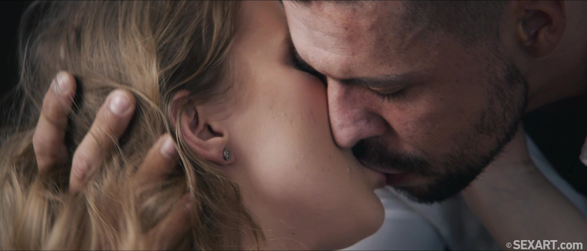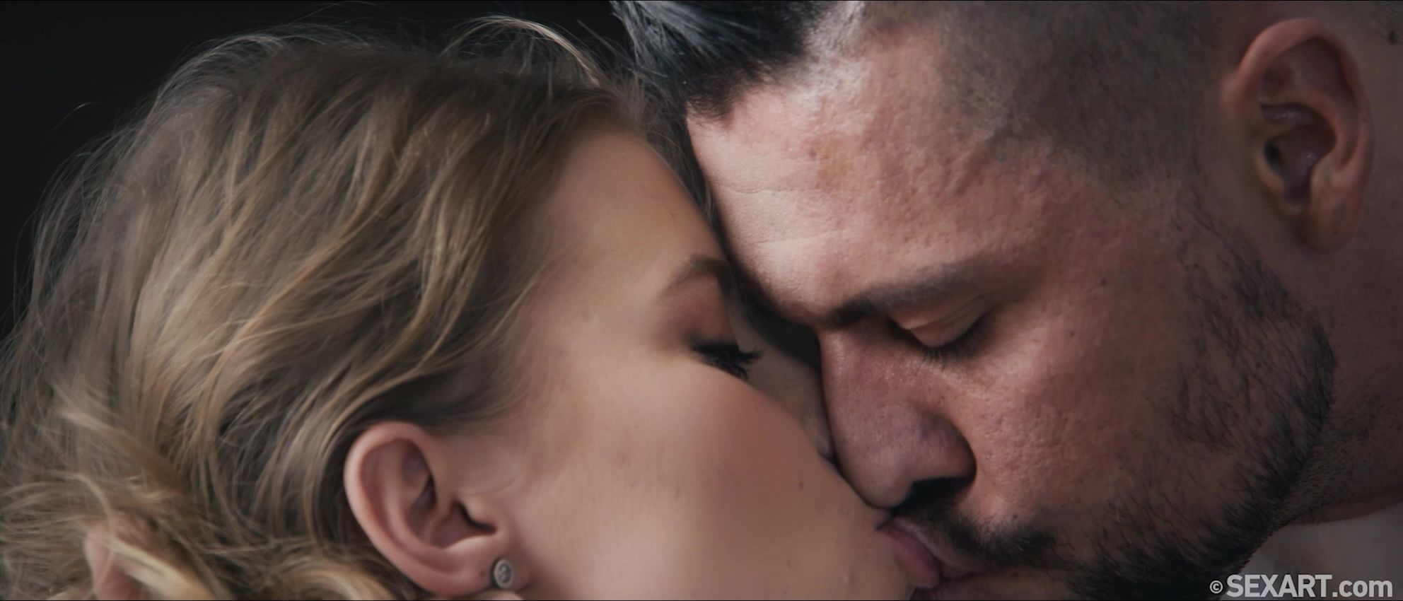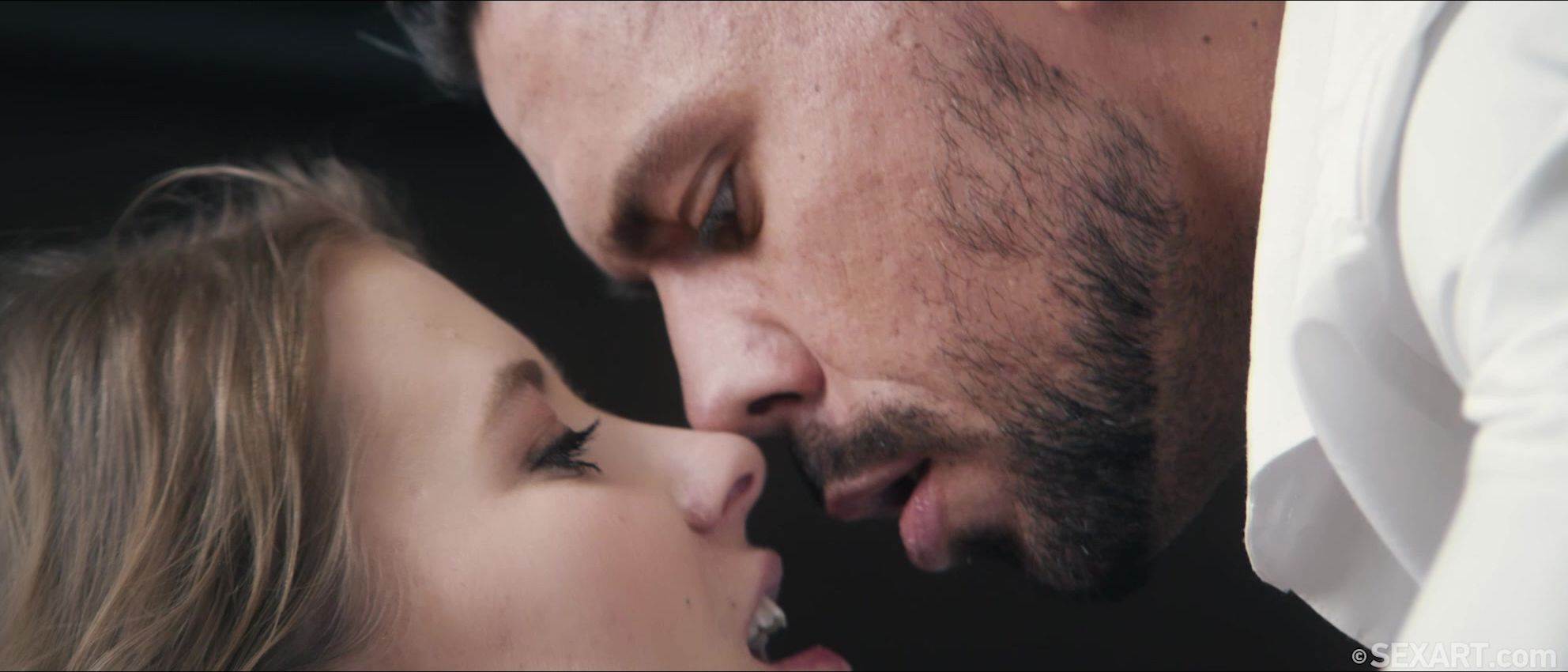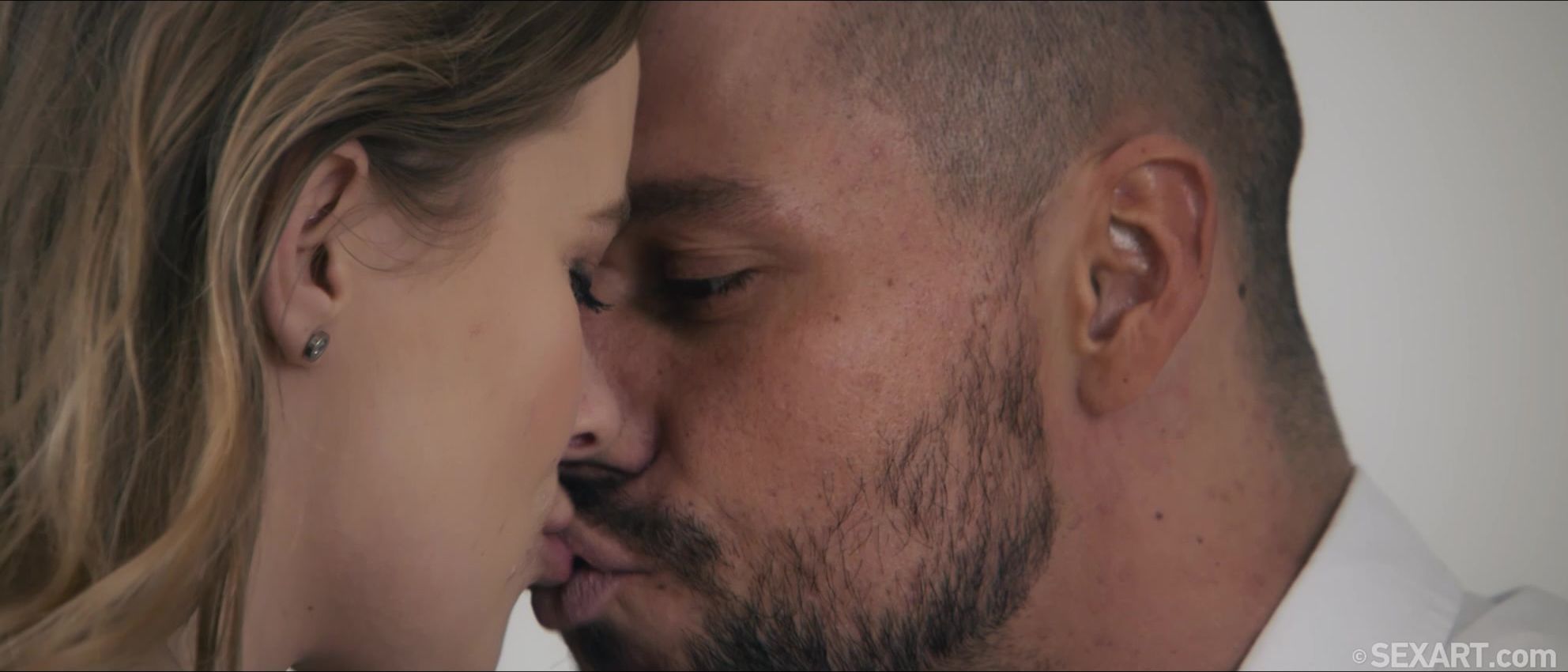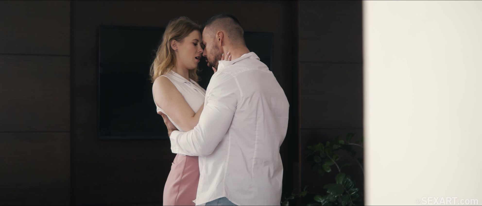 Cute blonde Casey is taking a moment to relax, as Andrej Lupin’s erotic movie “Stay Right Here” begins. Angelo Godshack wants to go out, but she soon persuades him that they can have a better time at home, and her attentive lover is eager to make her happy. He massages her neck and kisses her tenderly, hands and lips exploring her body as she responds with growing passion. Aroused now, Casey frees Angelo’s rigid cock from his jeans, then bends over for him to squeeze and spank her sexy ass. He licks her pussy, spreading her pink folds open with his tongue, then eases his thick dick inside her, making her gasp with pleasure. She clings to him tightly as he fucks her to an intense orgasm, catching her breath as she sucks her own flavor from his hard cock. Moving into doggy, they slam together vigorously, switching to reverse cowgirl. Casey bounces in Angelo’s lap energetically, before kneeling to suck him again, lips tight around his fat shaft. She straddles him again in cowgirl, riding to another powerful climax as he fills her with his hot cum.