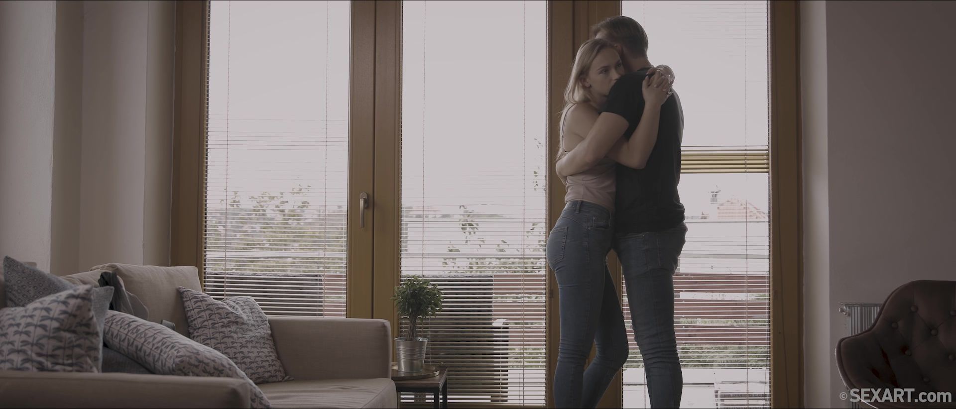Cute blonde Jenny Wild and her boyfriend Stanley Jones show up to view Kira Queen’s rental place, as the second episode of Andrej Lupin’s erotic two-part movie “Apt. 44” begins. At first they are not too impressed by the apartment, especially when they find Kira’s discarded panties on the radiator; but as Stanley hugs his sweetheart, her mood lightens. Kissing on the sofa, Jenny pulls down her top to bare her beautiful breasts for her lover to fondle. He laps at her nipples as she frees his stiffening cock from his jeans, then takes it in her mouth, gazing up at him with her big blue eyes as she sucks and licks it. She peels off her tight jeans and panties, lying back for Stanley to eat and fingerbang her shaved pussy. When she’s moaning with arousal, she straddles him in cowgirl, her nipples rock hard as she slides up and down on his thick shaft. She moves into a squat to ride harder and faster, bouncing until she’s breathless with pleasure. Pausing to suck her juice from his dick, Jenny spins around into reverse cowgirl, then spoons, strumming her clit as Stanley fucks her to a powerful orgasm. He makes her cum again as he fills her with his creamy load, their happiness restored.