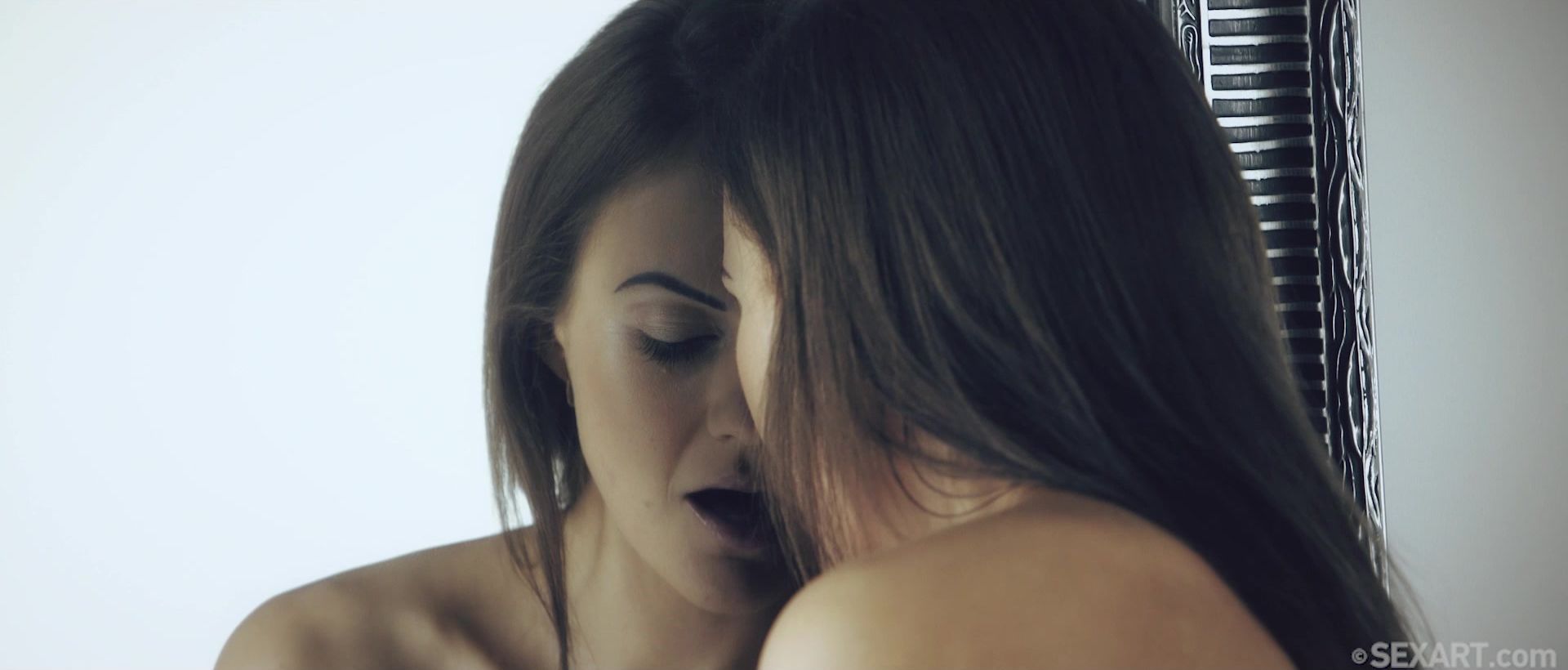 Gorgeous brunette Tina Kay and studly Maxmilian Dior drive each other wild in Andrej Lupin’s erotic movie “Sychronize.” Tina studies her stunning naked body in a full-length mirror as she explores her perfectly shaved pussy with her fingers. Her breath quickens as she rubs her clitoris fervently, licking her fingers to taste herself, squeezing her beautiful breasts and bringing herself to a powerful orgasm. Catching her breath, she looks at her reflection to see sculpted stud Maximilian approaching her. Already naked, he presses against her from behind and fondles her lustfully as she strokes his shaft to full hardness. They watch themselves in the mirror as they use their hands on each other; Tina’s moans fill the dreamlike room as Maxmilian enters her from behind, lifting her leg to expose her filled pussy while he thrusts into it forcefully. She rocks back to meet his strokes, smiling delightedly, then turns and presses her firm ass against the mirror as she guides his cock back inside her soaked pussy. They kiss as he fucks her toward the edge, then surprises her by dropping to his knees to lick her sensitive slit, exploring with his tongue until she can barely stand it. Athletic Maxmilian arches his body into a table position and encourages Tina to ride him. She loses herself in ecstasy again and again as she slides up and down on his rigid cock, her incredible ass rising and falling in his lap. Finally he stands and she bends over to take his huge erection in her mouth, sucking it deep and jerking his hot load out over her tanned tits. They admire her cum-streaked reflection in the mirror together, two perfectly matched, high-energy fuckbuddies.