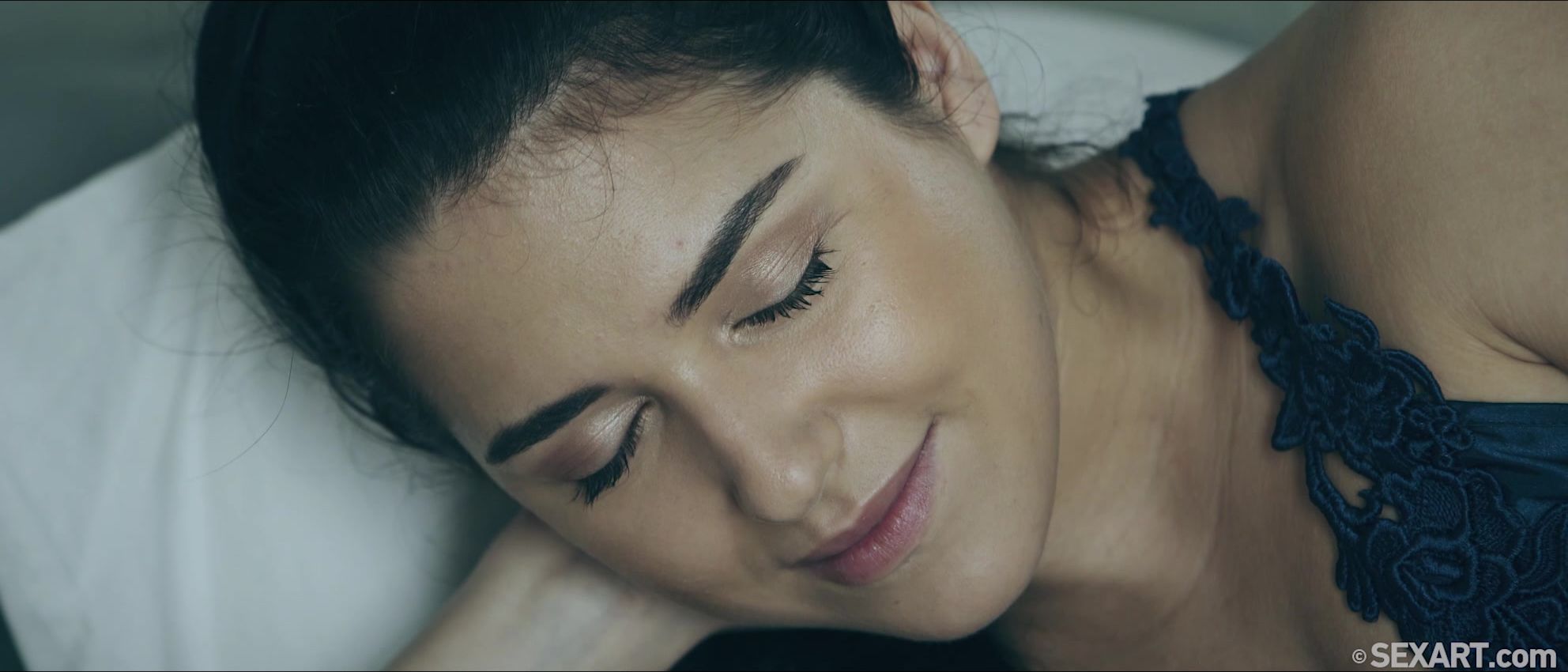 Sexy brunette Jessica Lincoln gets a tender massage from Michael Fly, in Andrej Lupin’s sensual movie “Feel Love.” The gorgeous babe smiles with pleasure as Michael increases the pressure of his hands all over her beautiful negligee-clad body. She turns to kiss him, moving down to stroke and nuzzle his stiff cock through his shorts, then pulling them off and fixing him with a sultry gaze as she jerks him with both hands. She trails her tongue over the head of his dick and wraps her lips around it, bobbing her head to take it deeper, swallowing as much as she can. Peeling off her lingerie, Michael sucks the erect nipples of her small, sweet breasts, then heads south to lick her shaved pussy, plump lips parting for his tongue. Her moans of excitement grow louder as he sinks his thick cock into her, thrusting steadily, her fingers strumming her clit as they look into each other’s eyes to share their passion. They roll over into cowgirl, Jessica riding high to let Michael hump up into her, then slamming down to bounce on him vigorously, gasping at the intense sensations. They move into spoons, Michael powering into Jessica harder now, giving her an intense orgasm as he shoots his hot load inside her. Kissing through the afterglow, we’re left in no doubt they “Feel Love.”