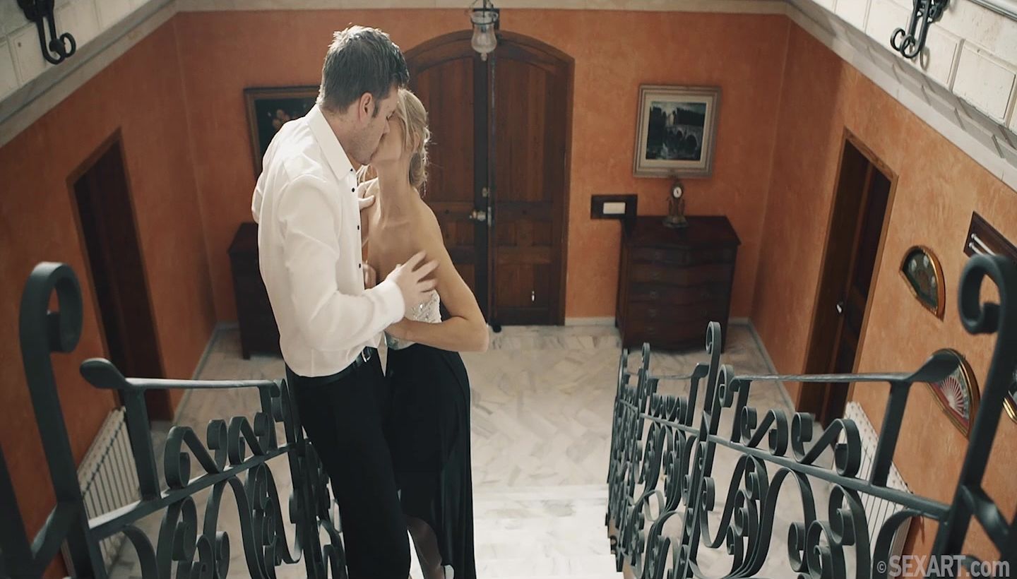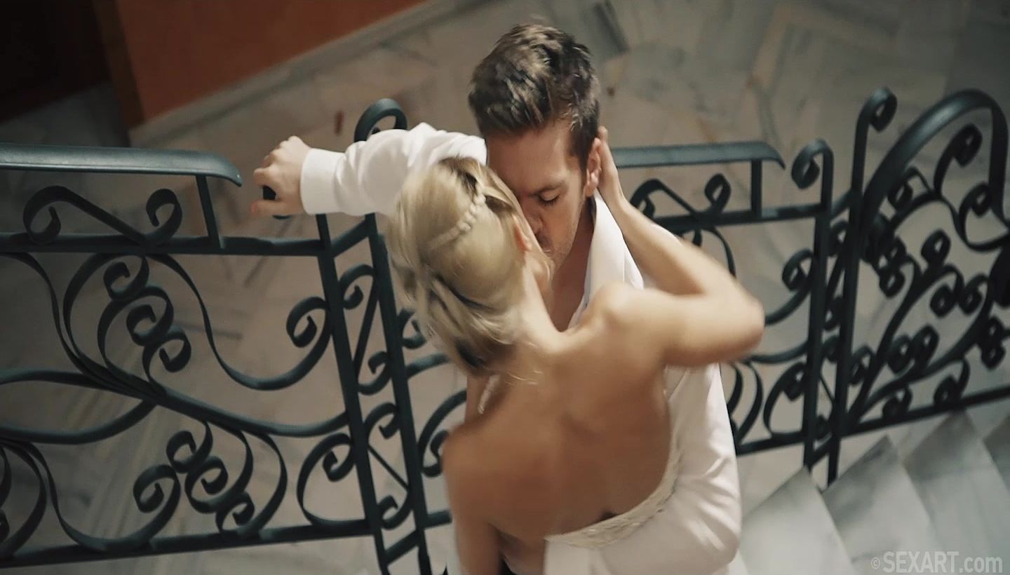 Andrej Lupin’s high-energy “Thinking About You” starts as it means to go on with full-on lust, as Katy Rose and Ryan Rider lock lips passionately and, unable to keep their hands off each other, undress precariously as they descend the stairs. By the time they reach the bottom, bare-chested Ryan has pulled sexy blonde Katy’s dress down far enough to suck on her delectable breasts. Tossing her onto the sofa, he dives between her open legs. Eyes closed, Katy throws her head back in ecstasy as Ryan tears aside her black panties and starts sucking eagerly on the labia of her shaven pussy. Libidos running rampant, they move frenetically, constantly groping, fingering and licking. Katy yanks off Ryan’s pants and pumps his already hard cock with one hand as they kiss lasciviously. She lies back with her legs spread wide, and Ryan slams his rod inside her juiced-up slot and starts thrusting away, relentlessly. Overwhelmed, Katy writhes uncontrollably beneath Ryan, hips bucking to meet his every thrust. On the brink of orgasm, Katy turns into doggy position, clinging onto the sofa for balance as Ryan pounds into her from behind. They pause for Katy to lick every molecule of her own pussy juice off Ryan’s throbbing shaft, before she straddles him and lowers herself cowgirl style onto his rod. Grinding her pussy hard against him, Katy rides vigorously and climaxes loudly, spinning into reverse cowgirl before jerking Ryan’s load out over her pussy. Stunning overhead angles make the most of this athletic and energetic couple as they enjoy each other’s vibrant sexuality without inhibition.