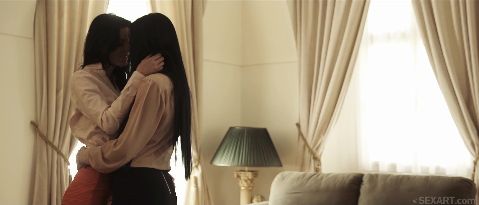 As Andrej Lupin’s “Resonate Dance” commences, Anna Rose stares forlornly out of the window while Margot A gazes fondly at her girlfriend. Margot comes to join Anna Rose at the window, lightening the mood and inviting her friend to dance. Their slow dance, bodies pressing close together, turns increasingly sensual as they kiss. Margot undresses her girlfriend slowly, licking and sucking her hardening nipples, then hitching up her skirt and squeezing her ass. Margot’s loving embrace turns Anna’s mind to lustful thoughts and she guides her friend onto the couch, parting her legs and lapping at her pussy. Her tongue circles Margot’s clit and spreads her labia open, dipping into her hole. Together, the honeys frig Margot’s pussy, Anna’s two fingers thrusting fast into her slot while Margot’s own fingers grind on her clit. When Anna falls back over the couch with her legs over her head, Margot dives face first for her crotch, pulling her panties aside and tongue-fucking her hole. She sucks hard on Anna’s clit before sticking two fingers inside her lover to pleasure her. Anna goes face down, ass up, rubbing her clit while Margot finger-fucks her and eats her asshole to an intense orgasm. A sensuous study of two elegant beauties with a shared passion, “Resonate Dance” is as arousing as it is gorgeous. Watch through the closing credits for a more playful version of their intimate dance!