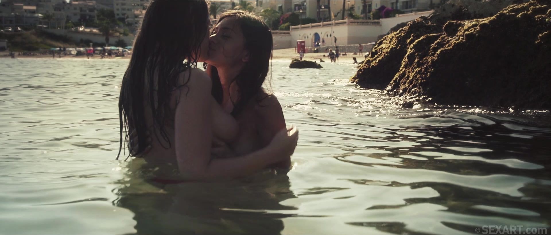Shrima Malati and Kendra Star, clad only in skimpy bikinis, frolic in the sea in the swinging Spanish resort of Sitges. They take off their bikini tops and begin to kiss tenderly, oblivious to the splashing crowd of holidaymakers. Once indoors, their barely concealed hunger for each other is unleashed, Kendra pushing her lover onto her back on the sofa and straddling her. Shrima nuzzles her face into Kendra’s ample cleavage; Kendra slides a hand into Shrima’s bikini bottoms, teasing her pussy, before peeling them off. As the fingers penetrating her wet pussy get her increasingly aroused, Shrima uncovers Kendra’s eye-popping natural breasts, sucking and licking them voraciously. She guides Kendra’s hand to move faster and deeper, then lies back, spreading her thighs wide for her curvaceous girlfriend to eat her. Kendra sits astride Shrima’s face, rocking her hips as she gets sucked and licked; when she’s close to her climax she bends over and Shrima pushes her over the edge with some energetic finger-banging. Shrima is still smiling like the cat that got the cream as they lie in each other’s arms, Shrima rubbing her own clitoris as Kendra strokes her to a powerful orgasm. If you’re missing that vacation feeling, “Summer Breeze” is as invigorating as a stroll along the seashore.
