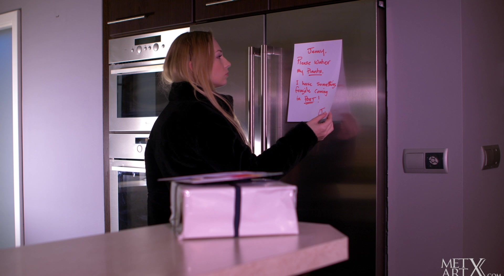 Gorgeous blonde Jenny Wild is the perfect house sitter, watering the plants and taking in the mail - until she opens a package and discovers a glass dildo shaped like a chilli pepper. She can’t resist trying it out, sucking the rounded shaft to lube it up as she strips down to her sexy lingerie and stockings. Panties off, she thrusts a finger into her wet pussy, gasping with arousal. She removes her corset and lies on the bed, tweaking her stiff nipples and easing the toy into her pussy. Sliding it in and out slowly to savor the sensations, the green-eyed beauty strums her clit as she fucks herself to a powerful orgasm.