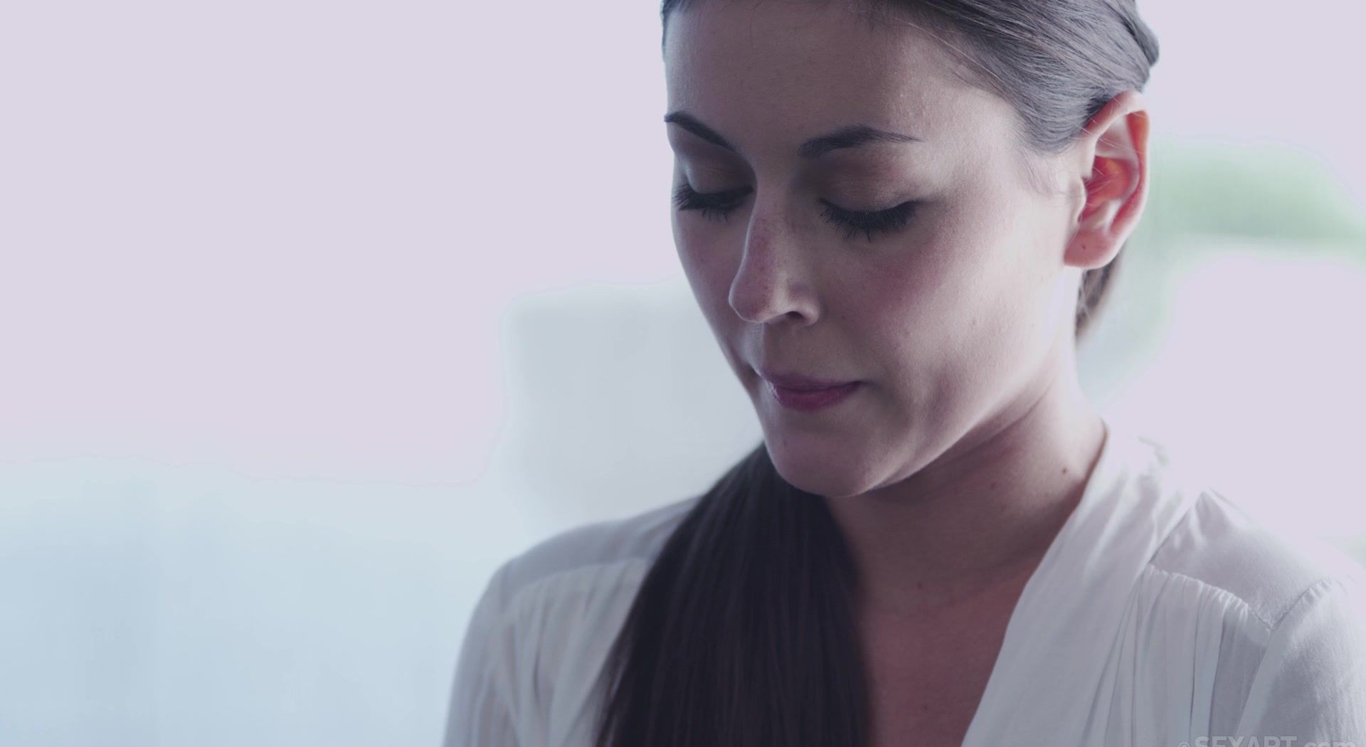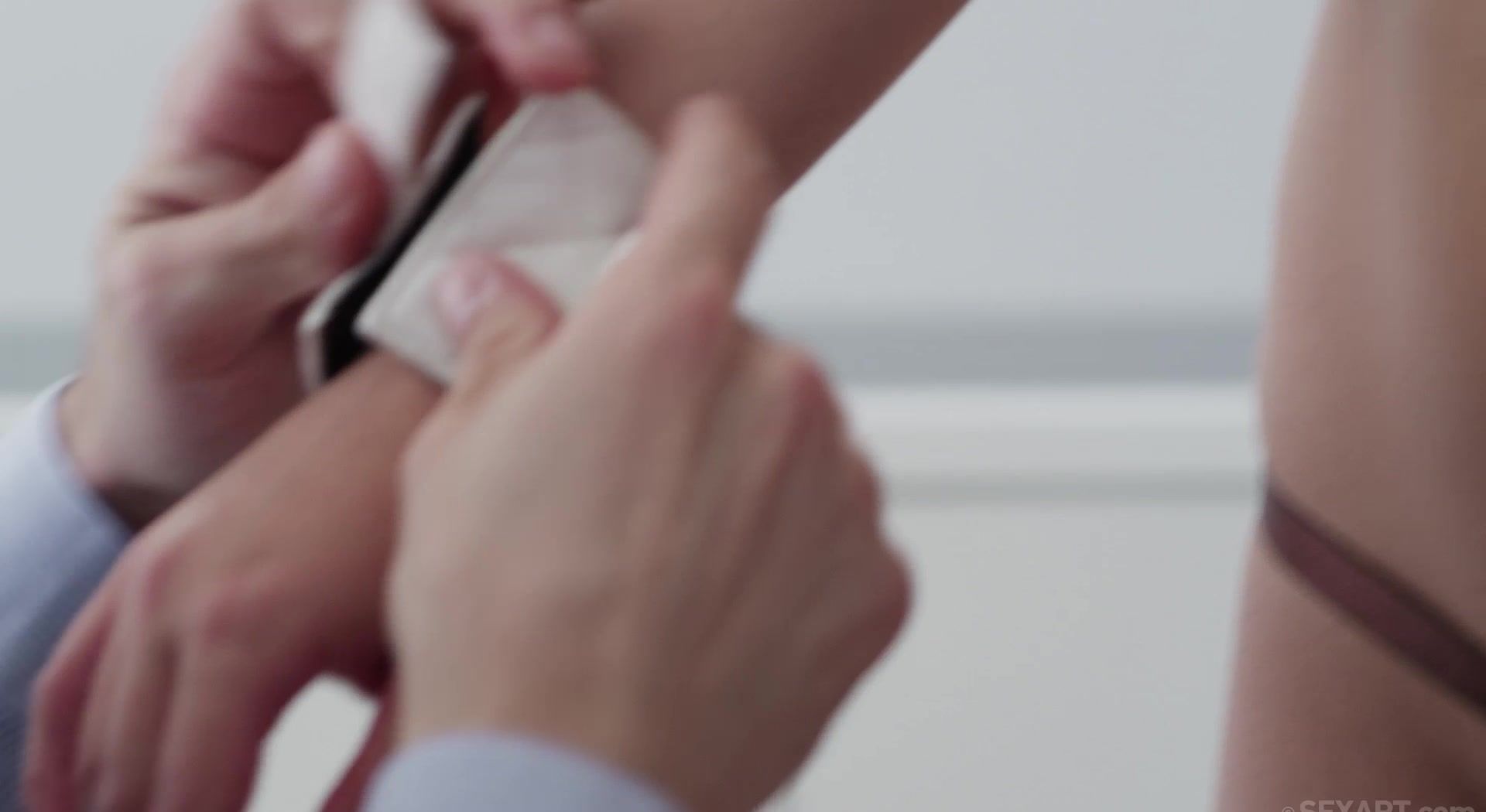 In "The Contract," director Alis Locanta returns, in a roundabout way, to themes he's explored previously, most notably his ambitious, four-part, "Love for Sale" series. But don't expect images of outer space or existential introspection here — despite some intentional ambiguity, "The Contract" is about a relatively simple business transaction, formalized, structured, and signed on the dotted line. When Iwia A appears at his door Franck Franco is pleasantly surprised. At first the mood is businesslike, if cordial. An agreement is outlined, and Iwia, despite some lingering reservations, signs it. What follows are a series of encounters specified in the title document, and although they are outlined in binding legalese, they are of a distinctly kinky nature. Her hands bound, Iwia has her panties lowered and the cheeks of her rump repeatedly spanked until they glow and she moans with pleasure. After being stripped and instructed to put on a skimpy bra and panties set, Iwia's hands are once more tethered and Franco methodically fingers her to ecstasy. In another encounter the dominant male services his willing and submissive signatory with a crystal dildo. "The Contract" reaches a somewhat unexpected crescendo when Iwia appears once more at Franco's door. Gone are the legal stipulations and erotic accoutrements, and in their place mutual desire, passion, and sexual hunger. This segment begins with intense kissing, segues into fevered fellation, and reaches a powerful and simultaneous orgasmic conclusion after an on-the-floor fuck. An intriguing cinematic structure, and two impressive performances make "The Contract" a particularly satisfying transaction.