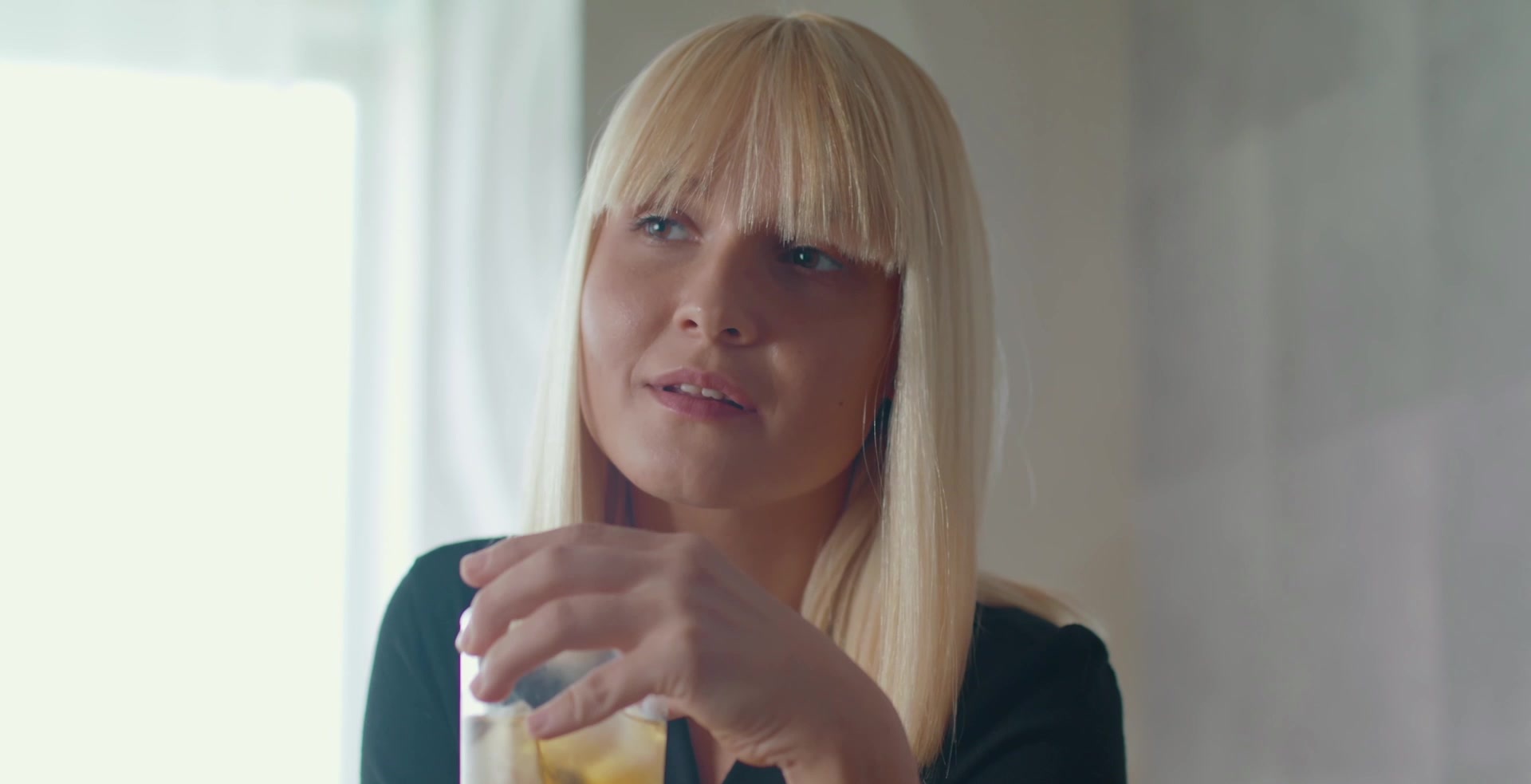 Beautiful blonde Lucretia K sits drinking at the kitchen counter, lost in her romantic memories. Stripping naked, she caresses her athletic body, squeezing her gorgeous breasts. She takes an ice cube from her drink and rubs it over her nipples, making them stiffen. Her fingers find her clit, sliding up and down over the hot folds as she moans softly. She moves into doggy position on the kitchen counter, frigging her shaved pussy faster, rivulets of ice water trickling down her body as she teases herself. Sitting with thighs spread, she masturbates to an overwhelming orgasm.