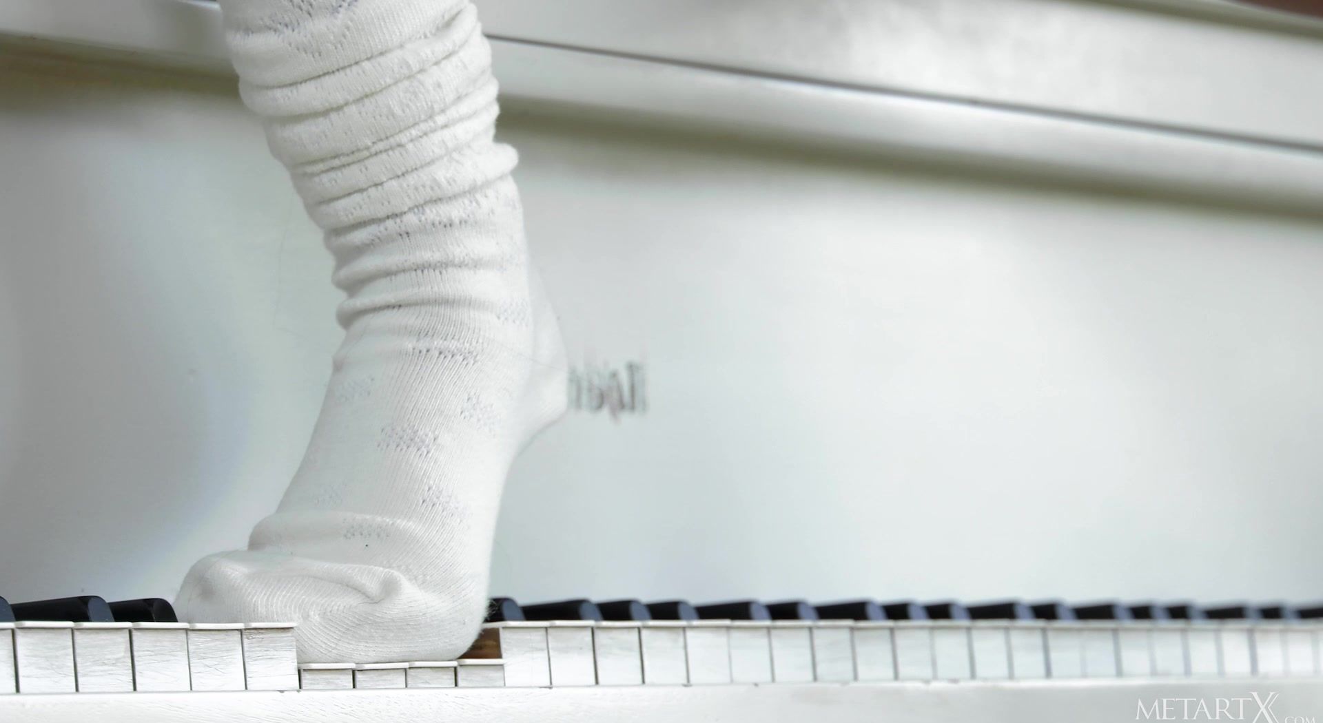 Hispanic beauty Gianna Dior is irresistible in sexy lingerie, swaying her hips seductively. She takes off her bra to reveal perky, uptilted breasts with tempting dark areolae. Pulling down her panties flirtatiously, she exposes her pretty pussy, with smooth lips and a neat dark triangle of bush. As the American sweetheart perches atop a white piano, she begins to stroke her clit, fingers moving in rapid circles. She squeezes her breasts, her nipples stiffening beneath her fingers, then sits with legs spread wide to strum her creamy pussy with greater intensity. Her moans grow more urgent as her pleasure builds, until she climaxes with a gasp of release.