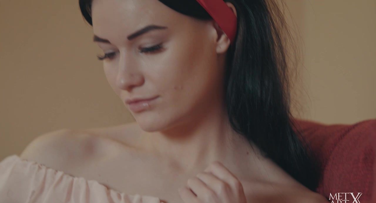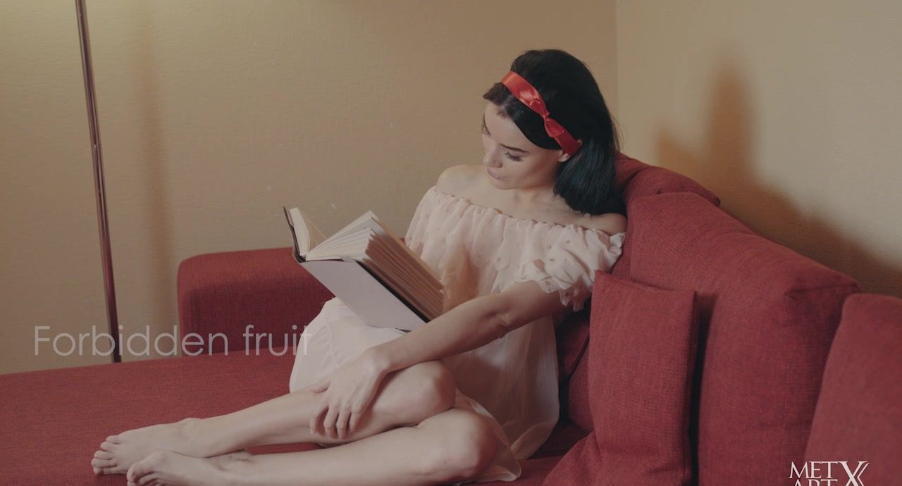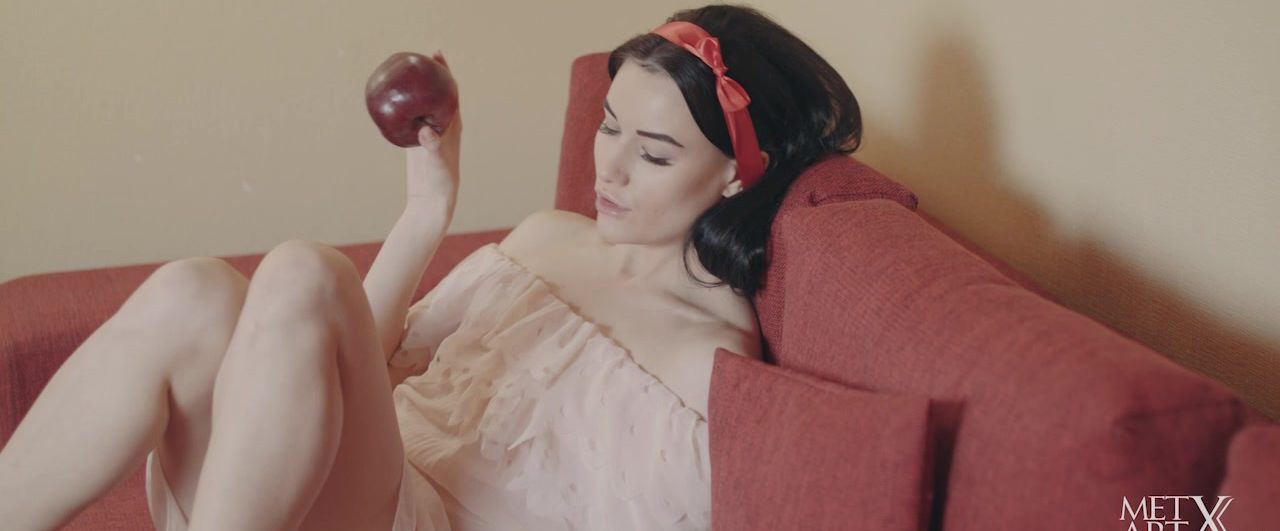 Sexy Elouisa sits curled on the couch reading, wearing an off-the-shoulder chiffon dress and red hairband, her hand absentmindedly stroking her bare calves. Whatever she's reading, it's turning her on, for when she looks at the apples on the table an idea crosses her mind and it's all wicked. Putting down her novel, she reaches for a piece of fruit, rolling it over her mouth without taking a bite. She shifts in her seat, leaning back with her legs open, rolling the apple over the crotch of her panties. Now she's ready to take a bite, crunching through the soft flesh with a look of pure lust in her eyes. The fruit is soon forgotten as her hands roam freely over her body, rubbing at her panties and sliding over her neck and chest. Naked, she sits back again to close her eyes and run her fingers over her clit. Around and around she rubs, turning herself on further with each rotation until her finger finds its way inside her pussy and there is just no holding back.