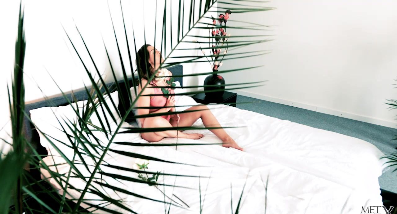 Sexy from the moment she awakens, in pink net top and panties that leave nothing to the imagination, Sybil A finds two white roses next to her. As she trails the blooms all over her body, her eyes close as though remembering a sexual encounter with the lover who left them for her. She exposes her luscious large breasts and fondles them sensually, before getting naked. Evidently super aroused, she moves around the bed, repeatedly frigging her audibly wet pussy, her moans of intense pleasure growing louder with every thrust of her fingers until her orgasm sweeps through her whole body.