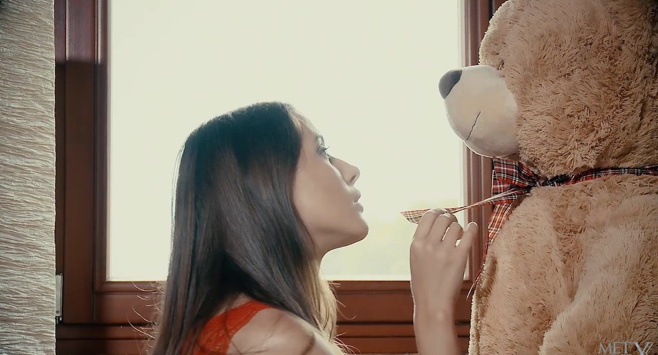 Sybil A’s big green eyes shimmer with sensuality as she gyrates her body in front of a huge mural, before dancing around playfully and taking selfies with an oversized teddy bear. The sexy Slovenian perches on the side of her bed and fondles her beautiful breasts through her orange, semi-transparent chemise, before popping them out the top of it. She lifts her lovely legs high in the air and slides off her white panties to reveal her shaved pussy, and immediately starts stimulating her plump labia. She licks two fingers and rubs the sticky digits in a circular motion on her pussy, concentrating on teasing her erect clit. Once naked, she writhes on the bed as she frigs herself relentlessly, until she emits a cry of pure orgasmic joy.