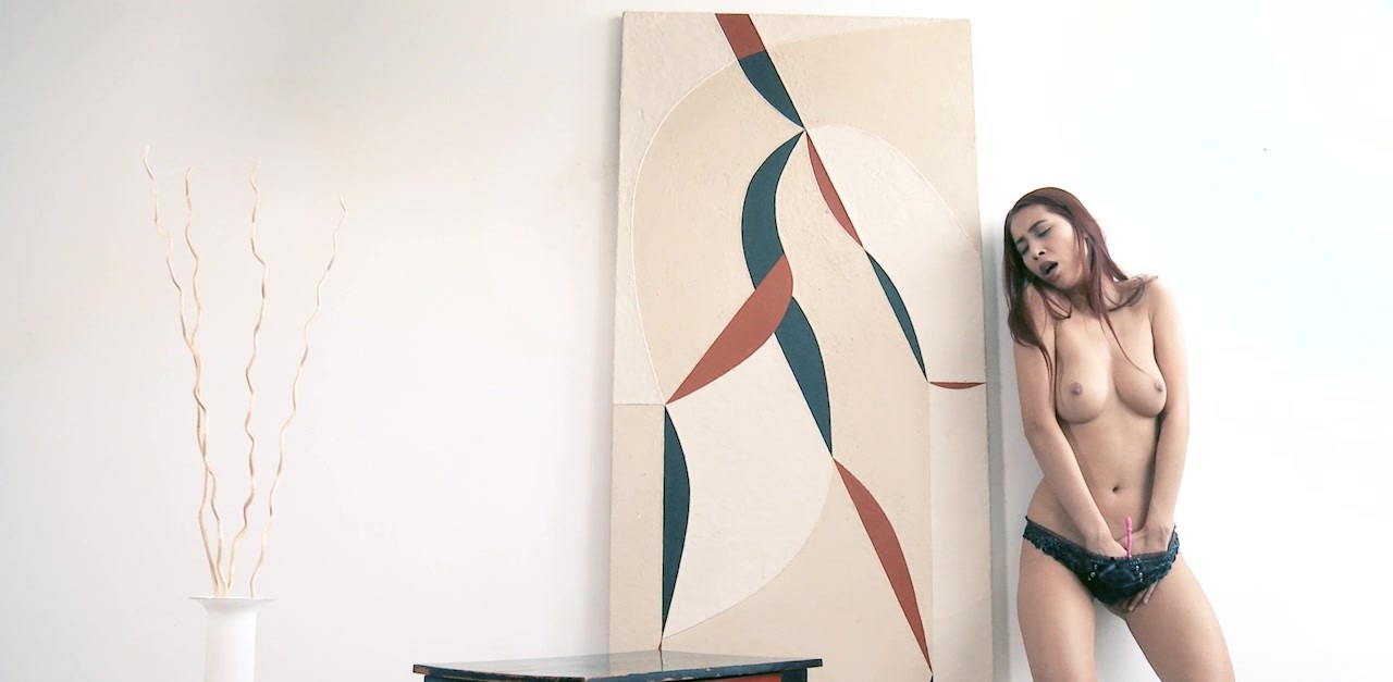 Metart X favorite Paula Shy crouches in front of a full-length mirror sensually smoking a cigarette, before descending the stairs of her apartment and stripping naked. The Czech hottie picks up a remote controlled, wearable vibrator. She licks it and rubs it against the nipples of her beautiful, ample breasts, before sliding it inside the front of her panties and gasping open-mouthed as it works its magic. The more turned on she becomes, the more she needs to take things to the next level. She discards the panties, faces away, bends forward, and holds the bulbous body of the vibrator against her labia while double-digit frigging her shaved pussy, hard, fast and deep. As sexual pleasure courses through her body, Paula lies on the floor to continue her finger ride to orgasm.