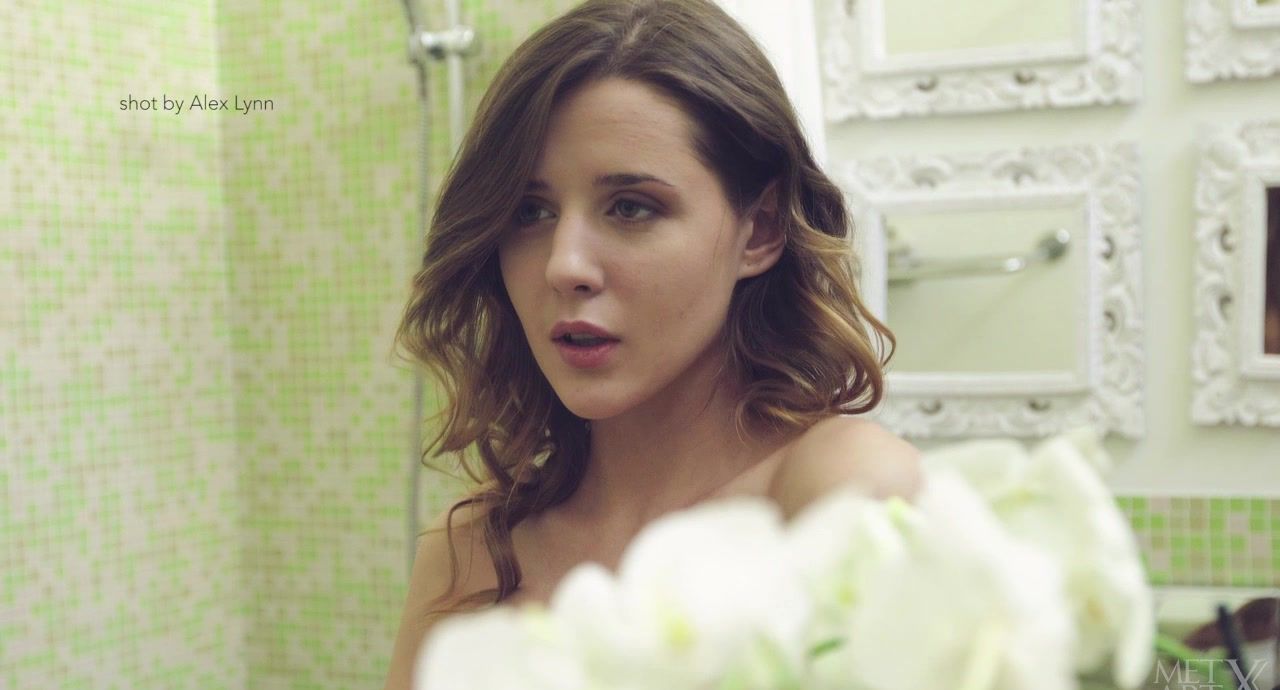 Sybil gazes at her beauty in the bathroom mirror, lifts up her towel and starts caressing her peachy ass, tugging a cheek to one side to reveal her beautifully plump pussy. She spins around and leans against the wall, groping her ample breasts while she frigs herself. Her actions make her temperature rise, so she drops the towel then returns to the task at hand. She is in such a state of excitement that she starts to lose her balance and sits down to continue driving her fingers deep and hard, in and out of her audibly wet pussy – until her gasping gets more erratic and she experiences an explosive orgasm.