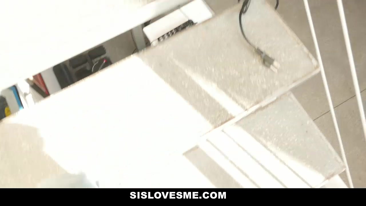 Blonde pretty brat stepsister Lily Rader gets a hard fuck from her big stepbrothers colossal cock while they are alone together at home.