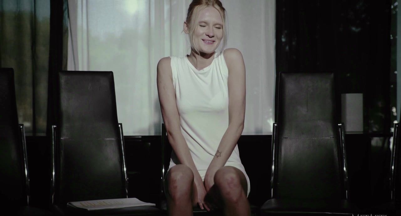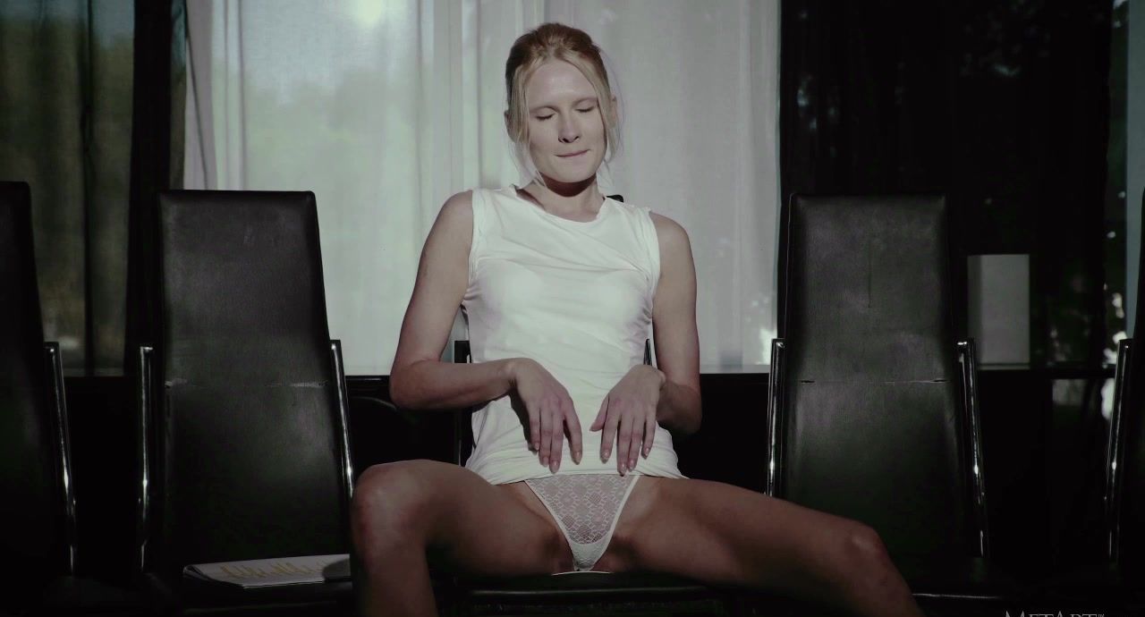 Stunning blue-eyed blonde Gerda Rubia crosses and uncrosses her legs to flash her tight, white panties. The camera cuts away, and when it returns to the open-legged, alabaster skinned Ukrainian babe, her panties have vanished, exposing her sweet, shaved pussy. She slips out off her dress, and lowers her bra to reveal her perfect small breasts. Smiling, her hands wander all over her silky smooth body, fondling the nipples of her beautiful breasts to stiffness, and caressing the cheeks of her delicious peachy ass. As she runs her fingertips along her inner thighs she shudders with pleasure as sexual electricity courses through her from head to toe.