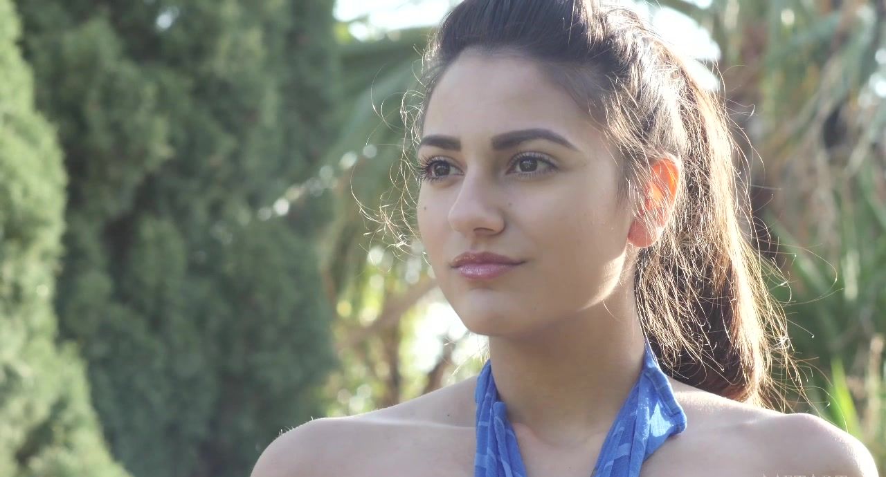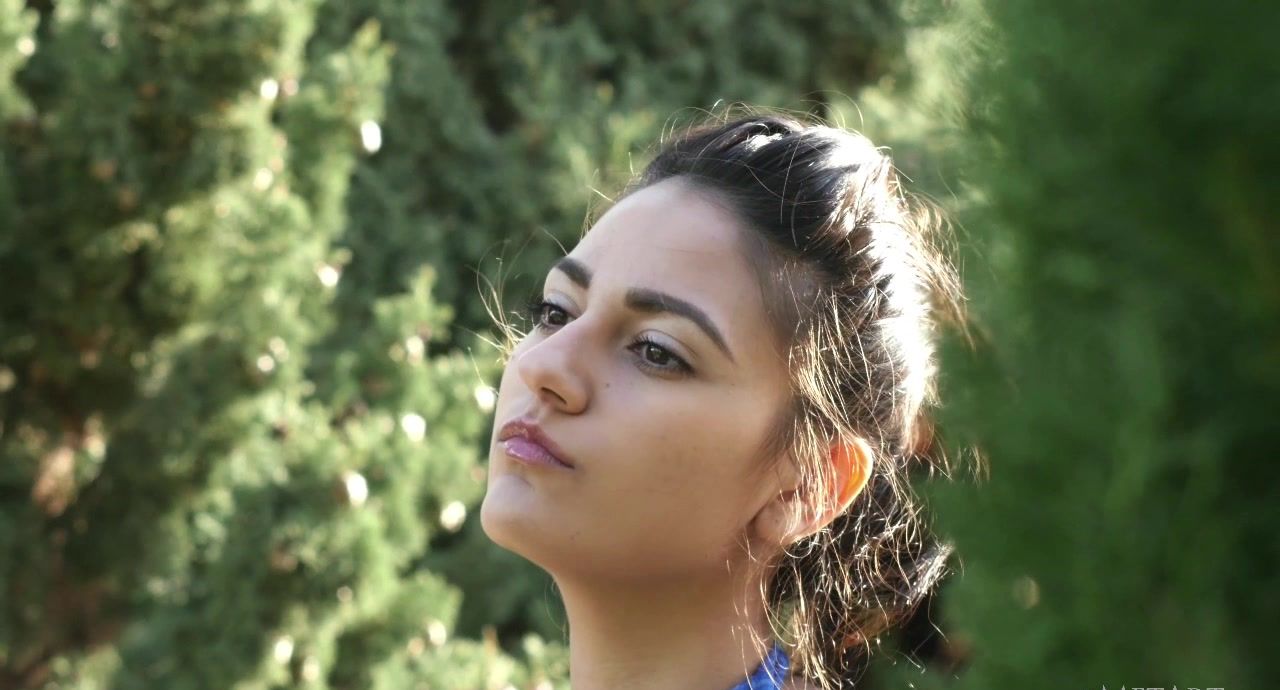 We watch gorgeous Cira Nerri slipping into glossy black high heels, and stepping away, the camera seeing first just her feet, but as she moves away, her legs and then her sweet peach of an ass inside tight black panties, a white wool cardigan finishing off her outfit. Cira takes off her top to reveal her beautiful body, an olive-skinned beauty with sweet little breasts and sexy dark nipples. She wraps a blue chiffon scarf around her body, too small to do much more than cover her breasts, and then steps outside where the wind catches her cloth and blows it up seductively. Slowly she slips her panties down, letting her shaved pussy appear between her thighs, keeping her underwear stretched around slender thighs. She takes us home, where she lies down on her couch, her naked ass in your face, and smiles the smile of the sexually hungry over her shoulder.