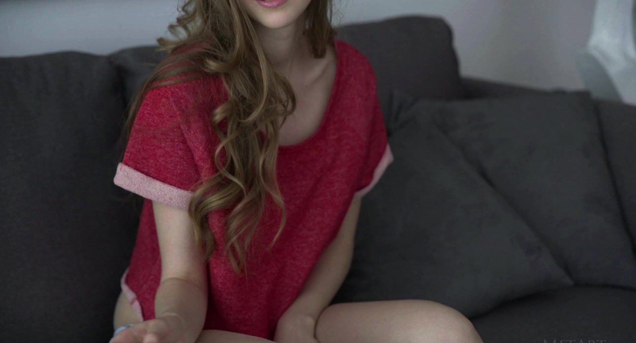 Cute Kay J is having a casual afternoon channel hopping from her sofa, dressed in nothing but panties and a loose fitting red and pink top. There’s a distinctive hint of naughtiness in her beautiful blue eyes, and she smiles as her hands start to flit all over her body, caressing it through what little clothing she’s wearing. When she pulls up the top, the nipples of her perfect breasts are already erect, but she can’t resist stimulating them further. Rolling over onto her front, she slides the panties over the curves of her gorgeous bottom and down to her knees, before tugging on her ass cheeks and causing her plump, shaved pussy lips to part. As soon as she’s naked, Kay lies back and smiles as her hands roam all over every inch of her silky smooth, pale skin.