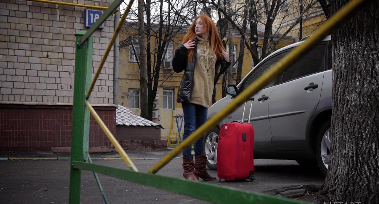 Finding an unattended suitcase in the middle of the street, porcelain skinned beauty Michelle H takes it home to check it out. Inside she finds some seriously sexy clothes and decides to try them on. The raunchy redhead steps out of her panties and prim blouse and skirt and gets busy with her find; high heels, tight denim hot pants and a see-through mesh T-shirt are what she goes for first, looking incredibly sexy as she poses in her mirror. The horny babe doesn't get further, stripping out of her new clothes to writhe on the floor, her beautiful breasts and shaved naked pussy in need of attention. But she just can't resist the red plaid mini skirt and matching top, made for upskirt fun!