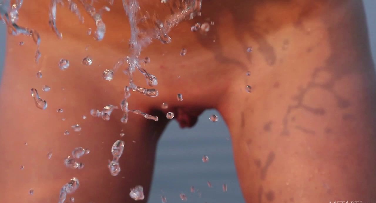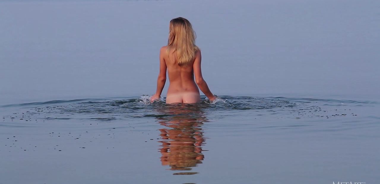Petite Ukrainian sex kitten Kaleesy walks barefoot on a beach, her beautiful blonde hair blowing in the breeze. She steps into the water and lowers her dress off her slender shoulders to expose her pert breasts with their puffy nipples. Undoing the leather belt around her waist, she hikes up the dress for a quick flash of her shaved pussy, then spins around to show off her firm, delicious peach. Unabashedly, she removes the dress and paddles into the ocean, naked, splashing water over her tan-lined body. The way she smiles is a total turn-on, especially when she does it spread legged on the beach with her most precious assets on full display.