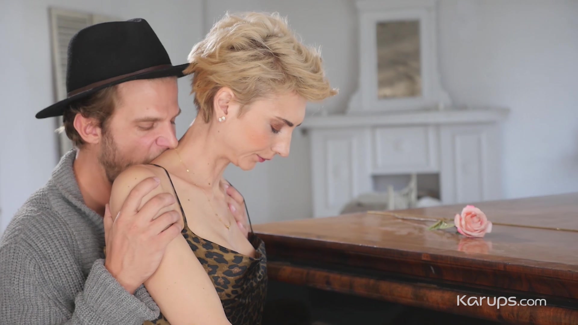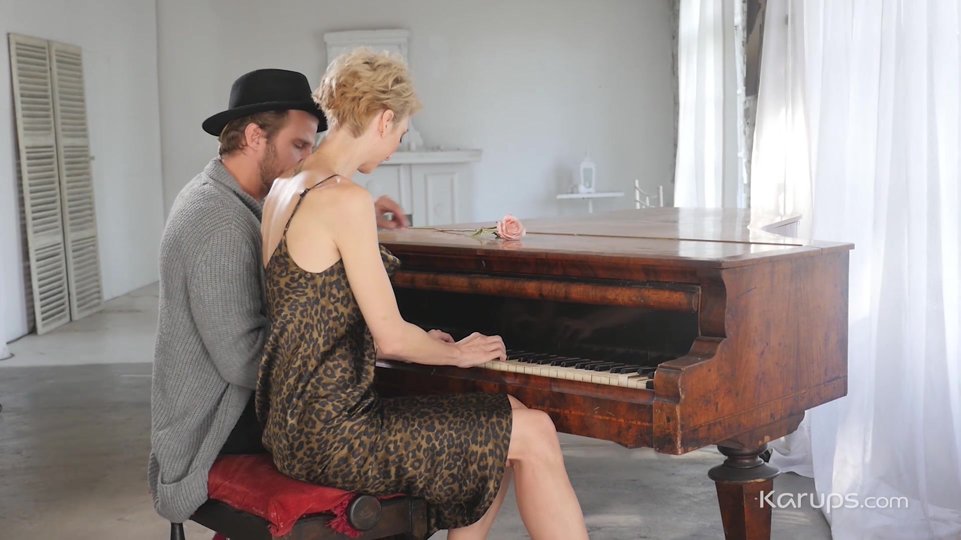 Wanting to expand her horizons, sexy MILF Natalie Anna started taking piano lessons and really enjoyed them. As her teacher showed her how to play a few things, he put his arm around her and rubbed her back then leaned in and kissed her. She wanted him badly, pulling her dress up so he could slide her panties to the side and finger fuck that wet pussy. Natalie showed off her oral skills when she gave him some amazing head that got his thick cock rock hard then he bent that fit, sexy MILF over and drilled her from behind. Moving from the piano to the bedroom, Natalie laid back and let him slide that thick cock in nice and deep. Her nipples were hard as she got on top and rode him, driving herself down onto his rod with such force she came all over his shaft. Her pussy felt so good he couldn't hold out long, pulling out and firing his load all over her shaved, well-fucked pussy.