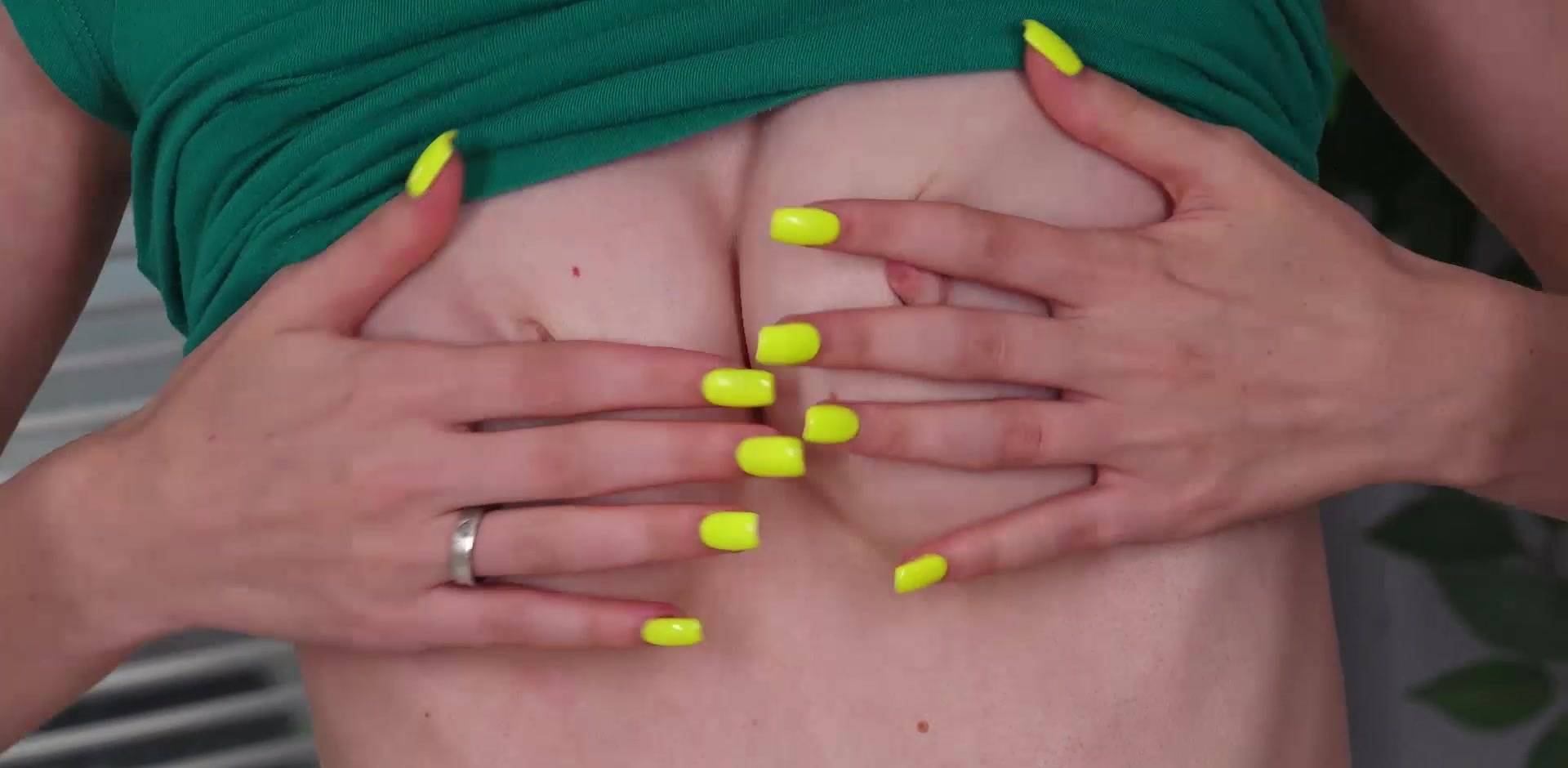 Alicia's boyfriend had to cancel their date. He had told her he was going to take her to a movie, to dinner, then back to his place to fuck. Now he had to work late and couldn't go, leaving the tight, babe sexually frustrated and annoyed. She might not be able to do much about being annoyed, but the sexy redhead could take care of the frustration. She took her jean shorts, panties, and shirt off, showing her tight body, cute ass, and fully shaved pussy. Getting on her knees on the couch, she reached up and started rubbing her shaved pussy, making herself wet as she moaned with desire. Finger fucking herself was fine, but she wanted to cum hard, so she got out her favorite vibrator and pressed it against her clit. After trying a few positions, she ended up on her hands and knees, fucking herself deep until she came hard and enjoyed the taste of her pussy as she licked her toy clean. He boyfriend missed out!