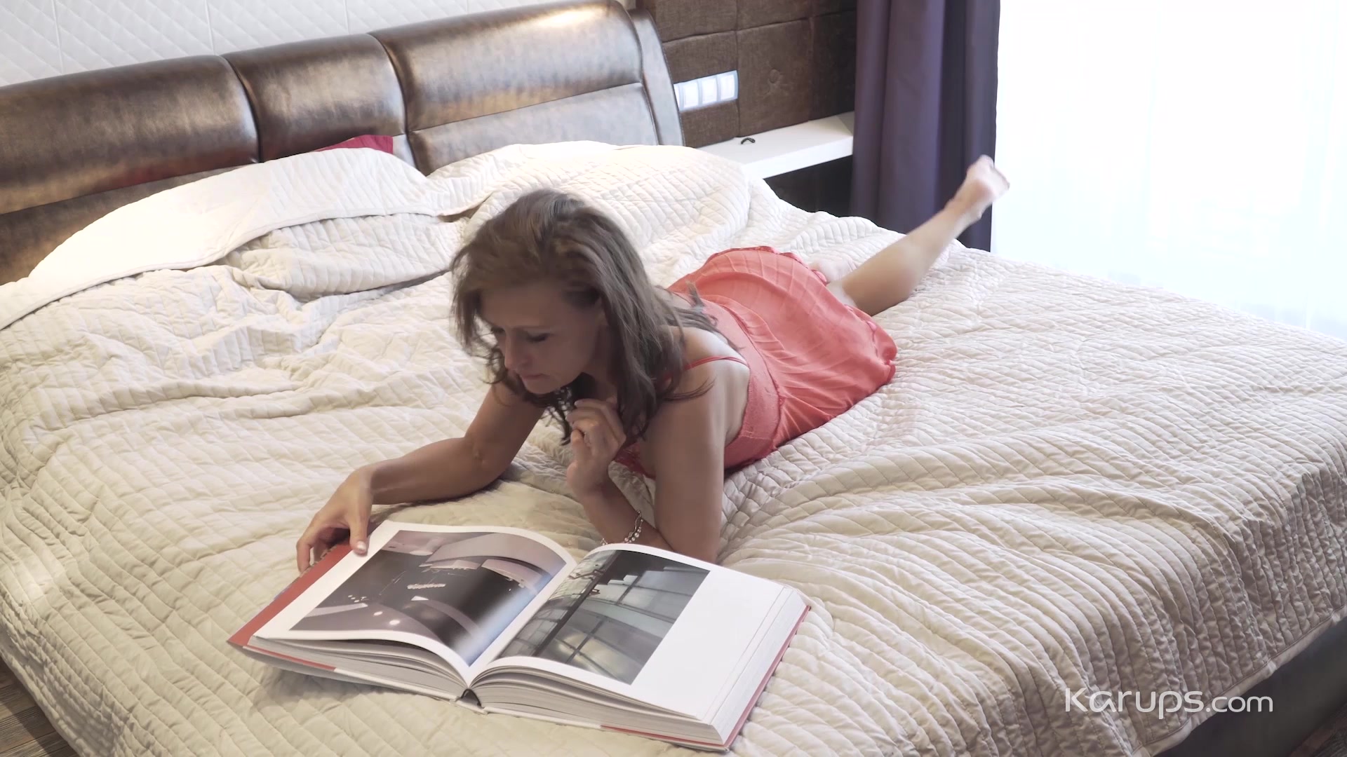 Tan, sexy MILF Drugaya was laying on her bed flipping through a book when she pulled the straps off her nightie and slipped out of it. Her thong didn't stay on much longer as she rolled around on her bed, showing off her fine, fit body and tight, shaved pussy. She let her curious hands wander all over her body with her left hand finding its way to her nipple and her right rubbing and teasing her clit. Running her hands all over her body had her so turned on she couldn't hold back any longer so she eased a finger into her pussy and finger fucked herself while using her free hand to rub and pinch her nipples. Her moans filled the room as she worked her hands faster until she hit that magic moment and came all over her fingers. It was a great start to the day, she got in a little reading and got off.