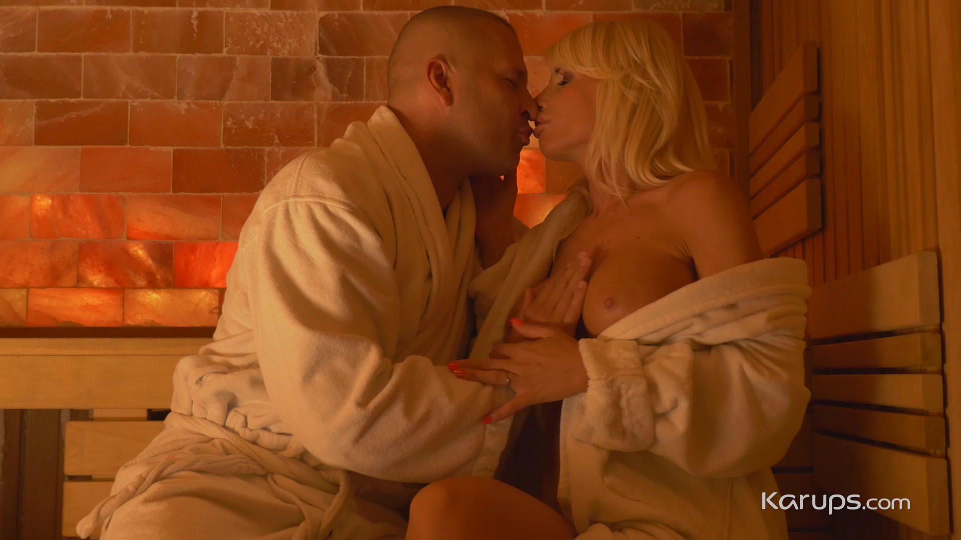 Busty mature cougar Tiffany Rousso is enjoying a sauna session with her big tits hanging out. A man joins her in the sauna, and the heat between them intensifies quickly. Soon they are fooling around in the sauna, before heading out to finish the job and fuck to completion in this hardcore scene from Karups.