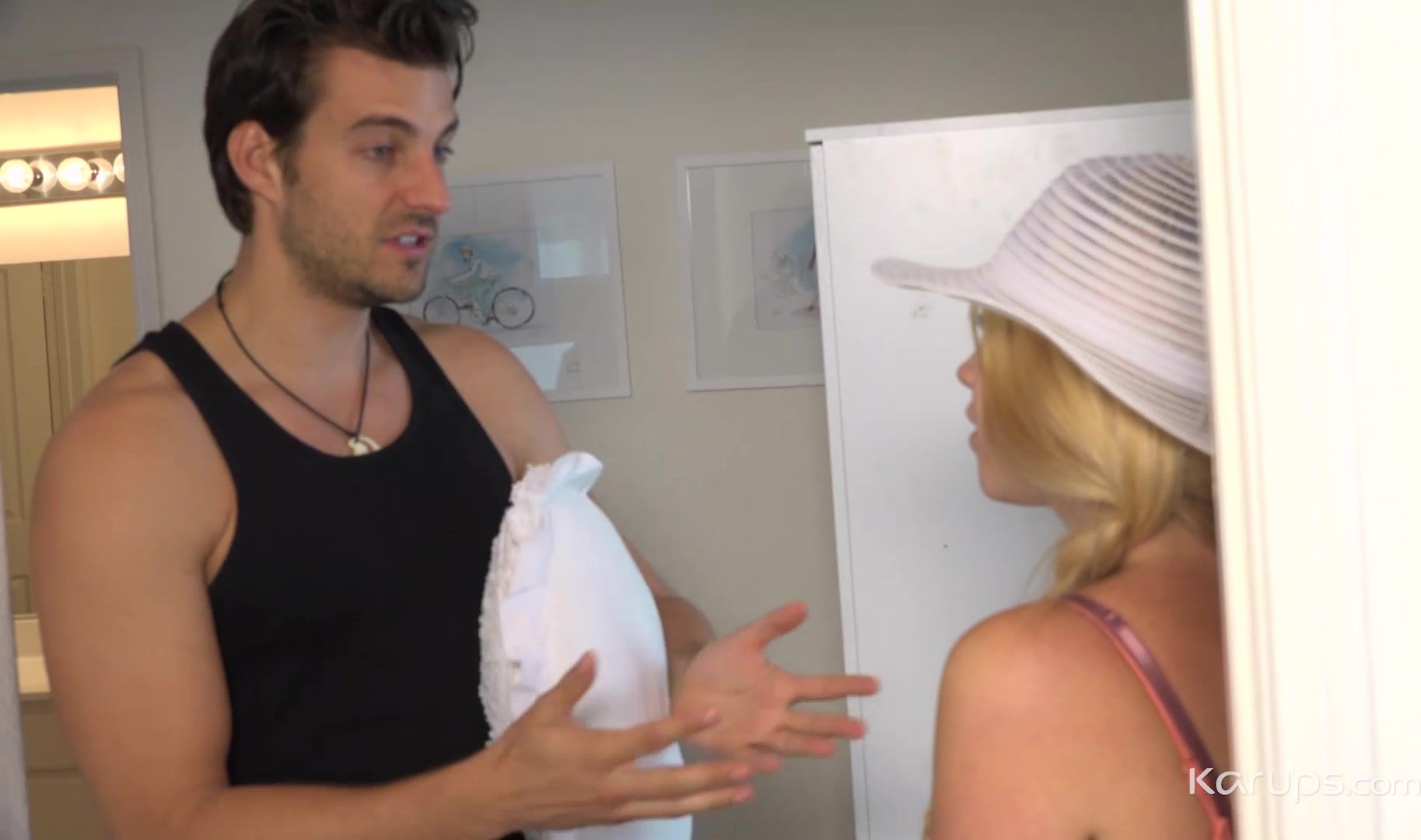 Fresh faced babe Georgia James finds the landscaper coming out of the bathroom and scaring her. He makes it up with a little massage which turns into some intense fucking and sucking in this hardcore sex video from Karups.