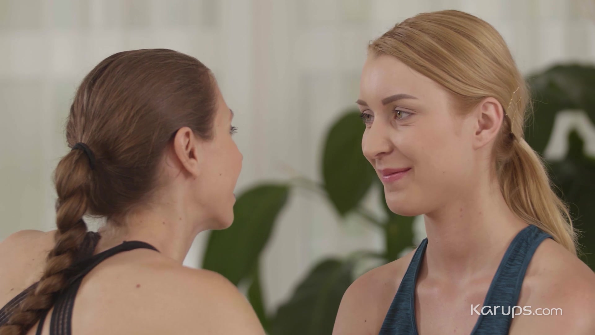 Stefanie and her friend Amaris were working out together in their apartment when Stefanie started flirting, touching Amaris’s body as she showed her how to do different exercises. Stefanie finished the workout by leaning in and giving Amaris a soft, nice kiss. Amaris had always thought Stefanie was hot so she is down to play, letting Stefanie take her shorts off so she can rub and lick Amaris’s shaved, tight pussy. This workout started with some stretching and light weightlifting and now Amaris was bent over the workout bench with Stefanie eating and fingering her pussy from behind. The babes couldn’t keep their hands off each other, touching, teasing and kissing. The workout came to a climactic end with Stefanie on all fours, cumming all over Amaris’s fingers as she finger-blasted Amaris’s shaved, pink pussy.