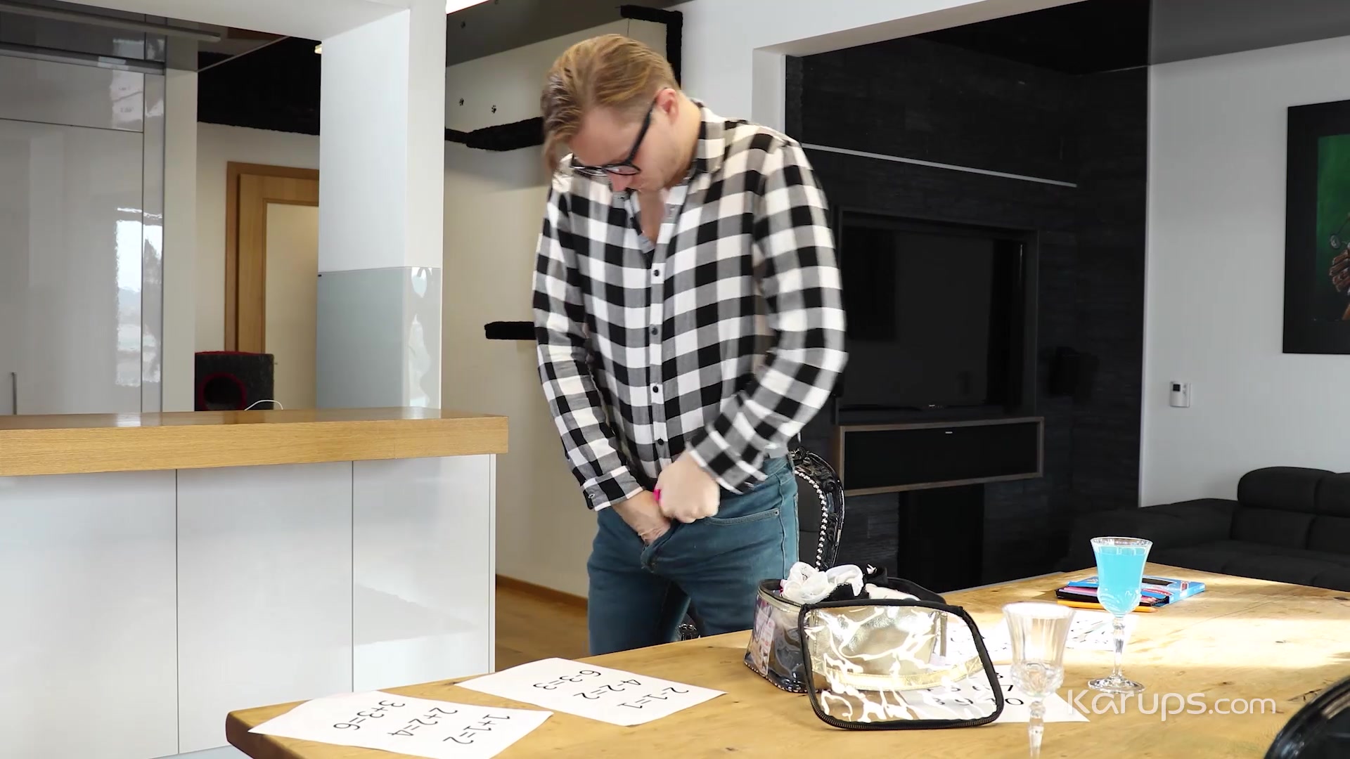 Jenny Wild had a tutor over to help her with a couple of classes she had been struggling with. At one point she had to leave the room for a moment and the teacher, thinking he was all alone, went through her bag, pulled out a pair of panties, and sniffed them then whipped his cock out, wrapped them around his shaft, and jerked off with them. Jenny walked in and caught him, but instead of being pissed off, she took the panties off his dick and put her mouth on it. Forget the lesson, this blonde, cute coed wanted to fuck. Both of them quickly got naked and the teacher took charge, bending her over the table so he could fuck her from behind. He fucked her on the table then moved to the couch where she got on top and bounced, her shaved pussy cumming all over his cock as she rode him like a dirty cowgirl. This erotic lesson came to and end when he came in her pussy. This afternoon he gave her a lesson and a creampie.