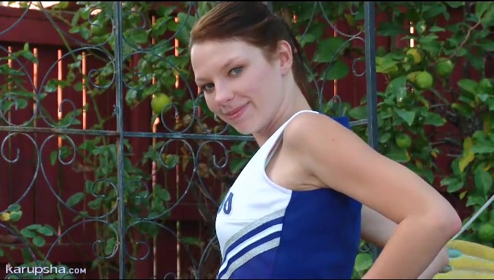 Cute cheerleader Chloe Love heads to the backyard to play with her pussy and even give her asshole a little cheer with her finger.