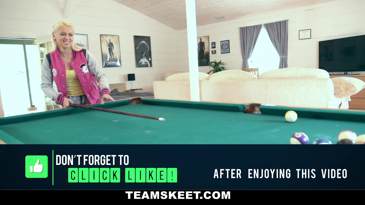 Pretty little naughty blonde woman Marsha May gets fucked in different positions by her step dad on top of a billiard table.