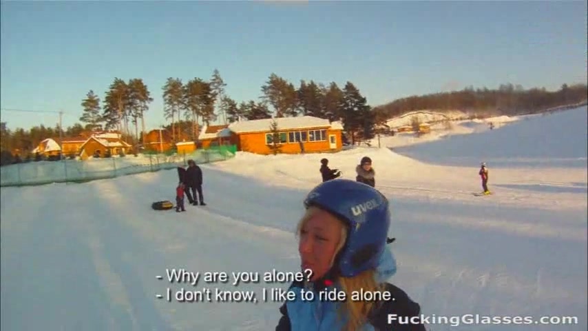 Teen chicks love snowboarders cuz they look stylish and can do some cool stuff on a slope. Andy gives this blonde a couple of rookie advises and she returns the favor by giving him a ride to the nearest forest and riding her mouth and pussy up and down his cock right on the snow. What a slut! She loves extreme sex and even though it's cold outside she takes the fucking with pleasure not even knowing Andy is capturing it all on his spy-glass camera.