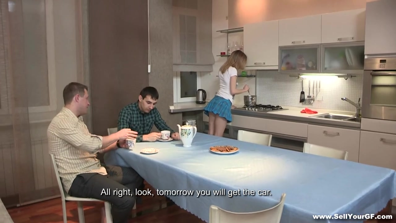 This babe is good in cooking dinner, but she's even better at serving her special dessert to her boyfriend's rich buddy. This guy will pay any money to fuck her and he does it right on a kitchen table making this slut moan of pleasure and blasting a load on her sexy ass cheek. Damn, he even has a cookie while fucking her pretty greedy mouth! What a total schmuck, but both the babe and her boyfriend seem to really enjoy it this way.