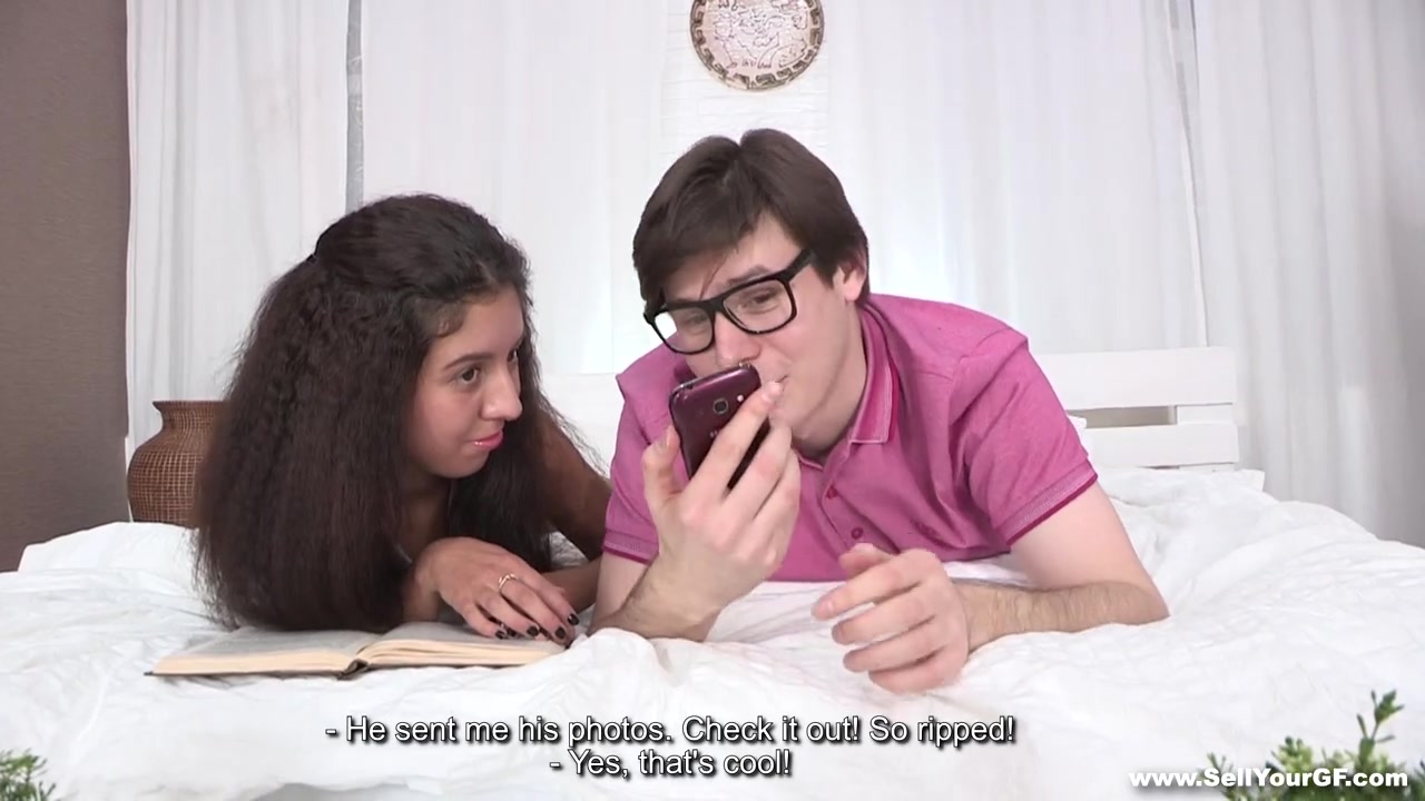 Katty and her boyfriend always wanted to try something new in sex and now that an opportunity presents itself they wanna make the best out of it. Their friend has a special gift for Katty and she is more than willing to thank him for it by sucking and riding his cock right in front of her boyfriend's eyes. Can you believe it? This perv is on board with the whole idea and it all looks like he's selling his girlfriend's pussy for a fucking smartphone.